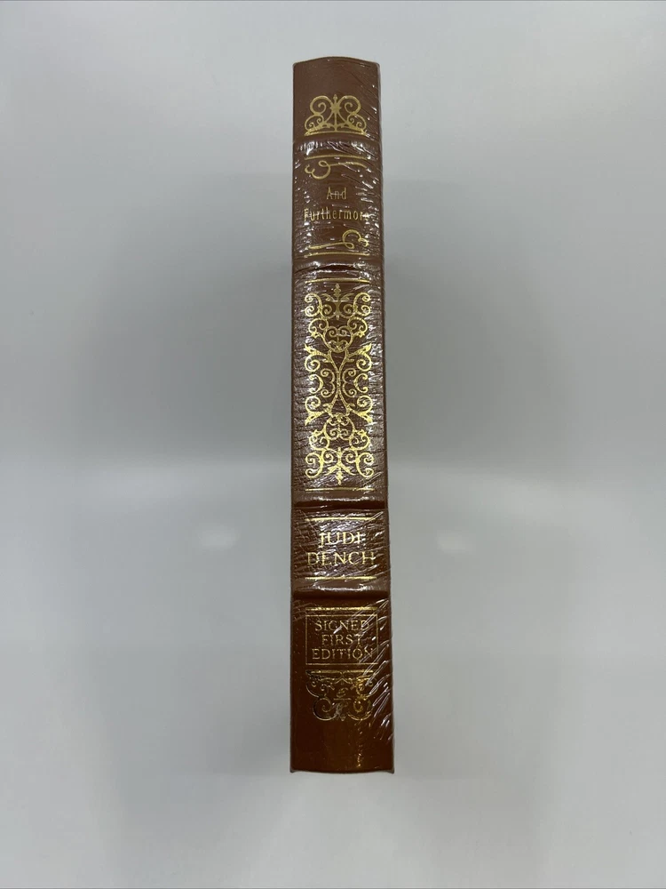 >>> GET IT NOW & ADD IT TO YOUR LIBRARY TODAY! <<< Leather-bound Easton Press collector's SIGNED FIRST EDITION of And Furthermore by Dame Judi Dench (SFE) Limited to 800 hand-numbered copies personally signed by the famous English actress, Dame Judi Dench Condition – Still sealed in publisher's original shrinkwrap ; original Note & Certificate of Authenticity (COA) enclosed; loose blank bookplate included; may have some dust from storage; please see all photos for details - photos are part of description; from an adult only smoke & pet free household; owl not included Shipping – boxed USPS Media Mail or Priority Mail (selectable at checkout); no international shipping (please do not ask) Payment – within two days from the listing's end (Best Offer acceptance) unless prior arrangements have been made No Returns/Sold 'As Is' – please contact me if you have any additional questions/issues or with requests for additional pictures >>> GET IT NOW & ADD IT TO YOUR LIBRARY TODAY! <<< *The only true First Editions (1 st Editions) from Easton Press you can be 100% certain about are books with “Signed First Edition " gilt-stamped on the leather spine or “Signed First Edition " printed on the title page and/or on the signature page. It is impossible to tell if any other Easton Press book is a first edition or first printing. Please keep that in mind and if not sure ask sellers for photos proving their claim. **Easton Press does not provide the actual print date in their books. For "Year Printed" the copyright date is listed (oftentimes from the original Heritage Press editions, rights to which were sold to Easton Press), which may or may not indicate an accurate range for manufacture of the book. ***Please note that Easton Press’s term Collector’s Edition is not synonymous with Limited Edition (LE). The only true Limited Editions from Easton Press are copies hand-numbered on the limitation page (i.e. ‘Number 1 of 1200’ or ‘This edition is strictly limited to a quantity of 1200 copies of which this is number 1’). Please keep that in mind and if not sure ask sellers to prove their claim.