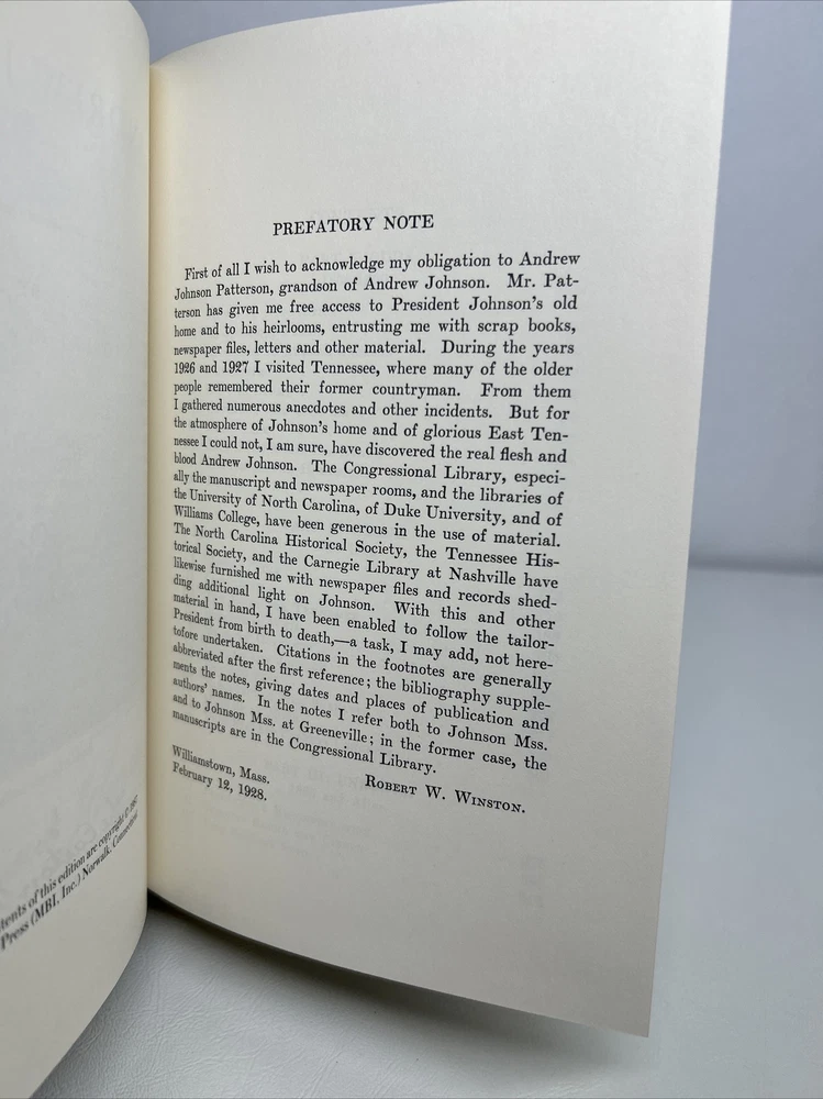 This collector's edition of "Andrew Johnson: Plebian and Patriot" by Robert Winston is a precious addition to any book lover's collection. The book is bound in high-quality leather and offers a historical insight into the life of one of the most controversial figures in American history. The book is written in English and covers the topic of biography and autobiography, specifically on the subject of Andrew Johnson, the 17th President of the United States. The publisher, Easton Press, is renowned for its exceptional quality and attention to detail when it comes to collectible books. This book is perfect for those who are interested in American history or simply appreciate a beautifully crafted book. Book spine has a slight slant. See pictures for details with more pictures available upon request. Thank you from Nicethingsvintage
