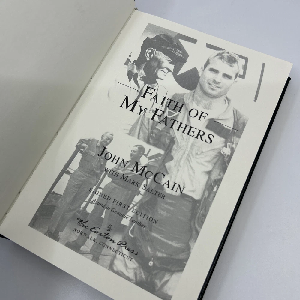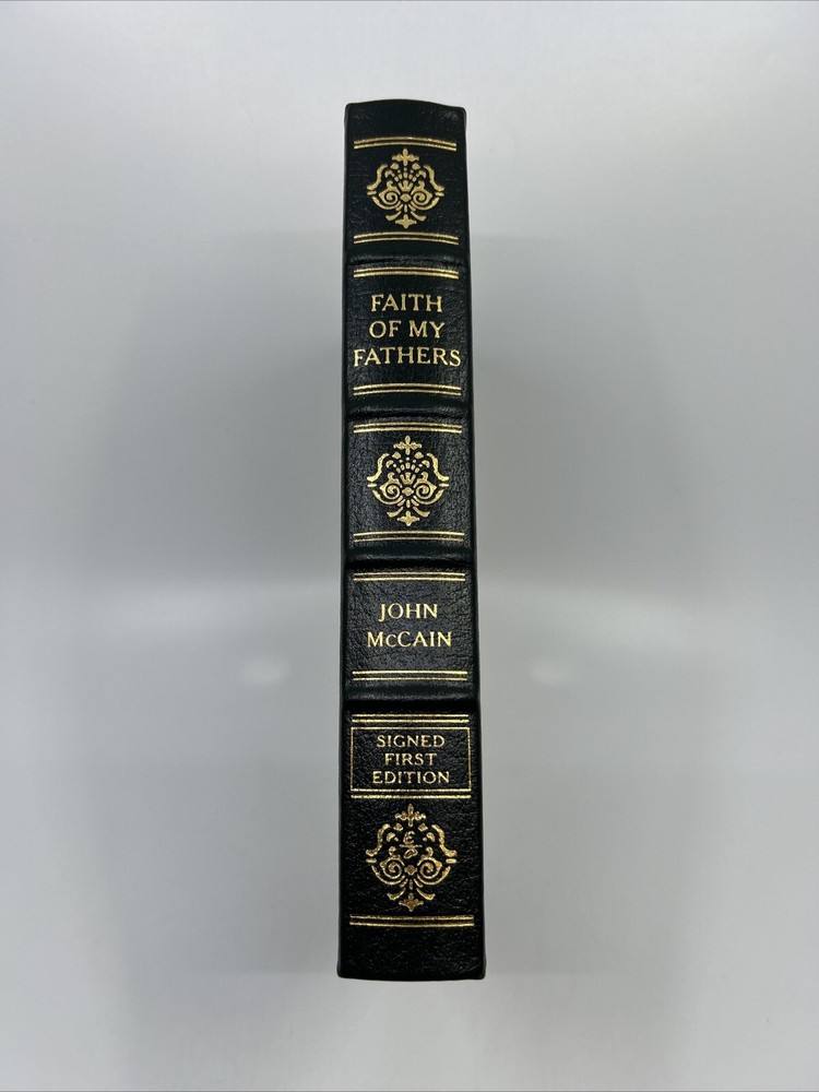>>> ADD IT TO YOUR COLLECTION TODAY! <<< Leather-bound Easton Press collector's SIGNED FIRST EDITION of Faith of My Fathers by John McCain (SFE) Limited to 1250 hand-numbered copies personally signed by John McCain Low number 20/1250 Condition – Very Good/Excellent; no attached bookplate/ no embossed seal/no signatures or markings ; slight shelf wear/marks/scratches/rubbing to page gilt & leather covers; original Note & Certificate of Authenticity (COA) included; loose blank bookplate laid in; may have some dust from storage; please see all photos for details - photos are part of description; from an adult only smoke & pet free household; owl not included Shipping – boxed USPS Media Mail or Priority Mail (selectable at checkout); no international shipping (please do not ask) Payment – within two days from the listing's end (Best Offer acceptance) unless prior arrangements have been made No Returns/Sold 'As Is' – please contact me if you have any additional questions/issues or with requests for additional pictures >>> ADD IT TO YOUR COLLECTION TODAY! <<< *The only true First Editions (1 st Editions) from Easton Press you can be 100% certain about are books with “Signed First Edition " gilt-stamped on the leather spine or “Signed First Edition " printed on the title page and/or on the signature page. It is impossible to tell if any other Easton Press book is a first edition or first printing. Please keep that in mind and if not sure ask sellers for photos proving their claim. **Easton Press does not provide the actual print date in their books. For "Year Printed" the copyright date is listed (oftentimes from the original Heritage Press editions, rights to which were sold to Easton Press), which may or may not indicate an accurate range for manufacture of the book. ***Please note that Easton Press’s term Collector’s Edition is not synonymous with Limited Edition (LE). The only true Limited Editions from Easton Press are copies hand-numbered on the limitation page (i.e. ‘Number 1 of 1200’ or ‘This edition is strictly limited to a quantity of 1200 copies of which this is number 1’). Please keep that in mind and if not sure ask sellers to prove their claim.