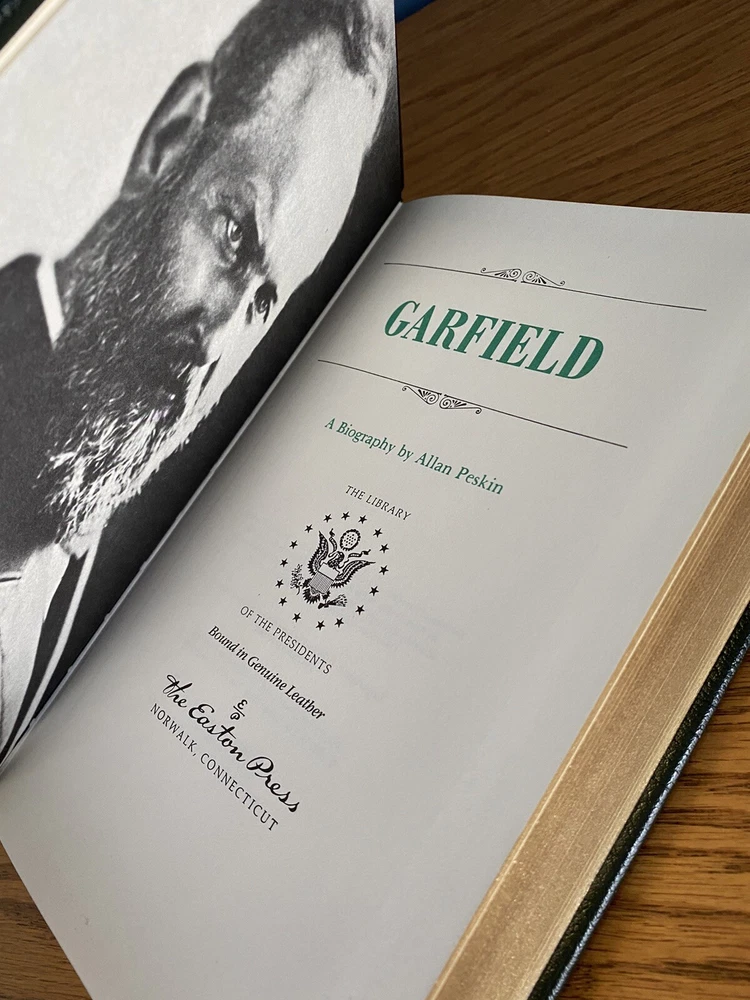 A like new and unread copy of Allan Peskin's, Garfield , this biography is part of Easton Press', Library of Presidents set. Bound in a handsome dark green leather, this copy will be a welcomed addition to any library. This book will be packed with ultimate care and shipped for FREE via USPS Media Mail. Thanks for looking and please let me know if you have any questions.