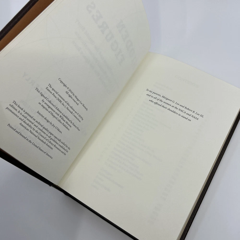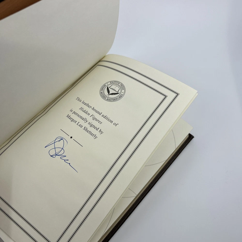 >>> GET IT NOW & ADD IT TO YOUR LIBRARY TODAY! <<< Leather-bound Easton Press collector's SIGNED EDITION of Hidden Figures: The American Dream and the Untold Story of the Black Women Who Helped Win the Space Race by Margot Lee Shetterly (SE) Personally signed by the author, Margot Lee Shetterly Condition – Very Good/Excellent; no attached bookplate/no embossed seal/no signatures or markings ; slight shelf wear/marks/scratches/rubbing/dings to page gilt; slight shelf wear/marks/rubbing/bumps to leather covers; slight imperfections/defects to front cover surface; NO Note, NO Certificate of Authenticity (COA) included; may have some dust from storage; please see all photos for details - photos are part of description; from an adult only smoke & pet free household; owl not included Shipping – boxed USPS Media Mail or Priority Mail (selectable at checkout); no international shipping (please do not ask) Payment – within two days from the listing's end (Best Offer acceptance) unless prior arrangements have been made No Returns/Sold 'As Is' – please contact me if you have any additional questions/issues or with requests for additional pictures >>> GET IT NOW & ADD IT TO YOUR LIBRARY TODAY! <<< *The only true First Editions (1 st Editions) from Easton Press you can be 100% certain about are books with “Signed First Edition " gilt-stamped on the leather spine or “Signed First Edition " printed on the title page and/or on the signature page. It is impossible to tell if any other Easton Press book is a first edition or first printing. Please keep that in mind and if not sure ask sellers for photos proving their claim. **Easton Press does not provide the actual print date in their books. For "Year Printed" the copyright date is listed (oftentimes from the original Heritage Press editions, rights to which were sold to Easton Press), which may or may not indicate an accurate range for manufacture of the book. ***Please note that Easton Press’s term Collector’s Edition is not synonymous with Limited Edition (LE). The only true Limited Editions from Easton Press are copies hand-numbered on the limitation page (i.e. ‘Number 1 of 1200’ or ‘This edition is strictly limited to a quantity of 1200 copies of which this is number 1’). Please keep that in mind and if not sure ask sellers to prove their claim.