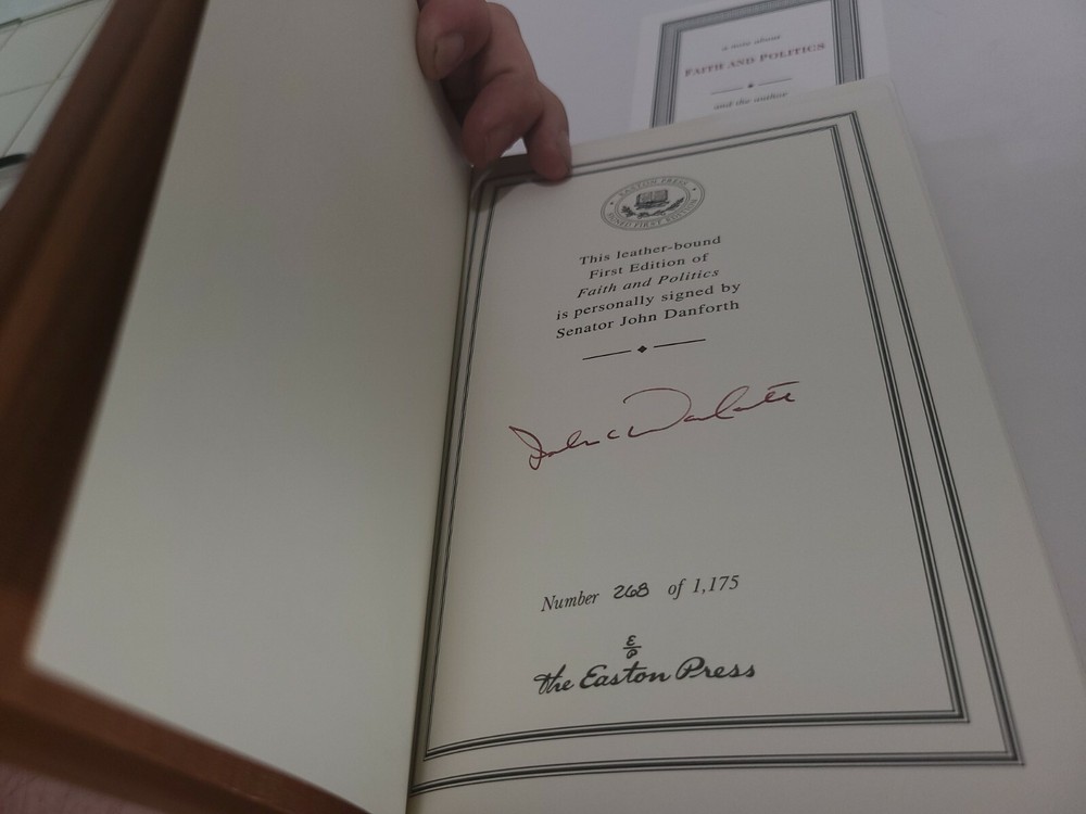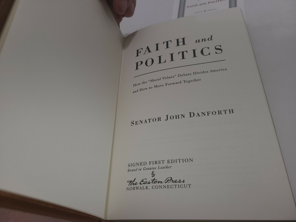 EASTON PRESS John Danforth FAITH AND POLITICS SIGNED FIRST EDITION Leather. Shipped with USPS Media Mail.