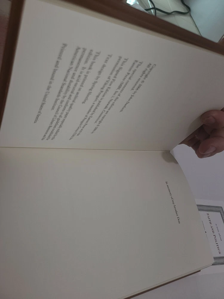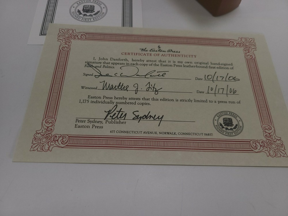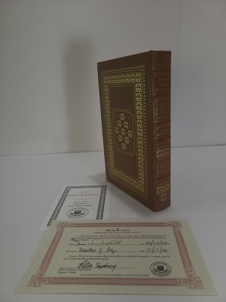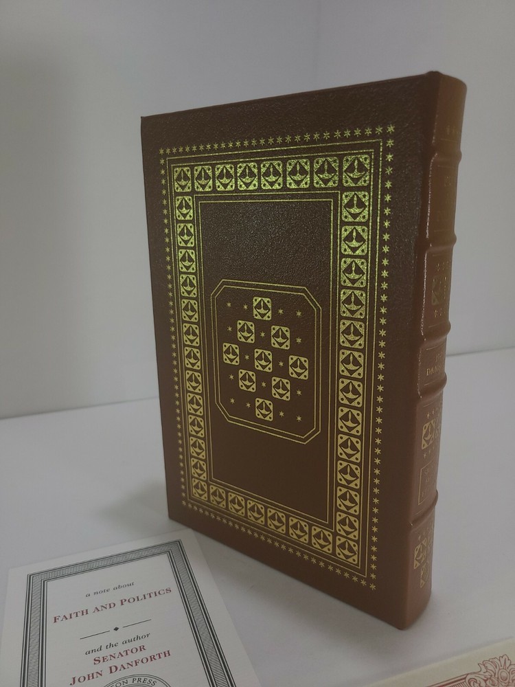 This signed first edition from Easton Press is a stunning collector's piece! The leather binding feels luxurious, and having Danforth's signature adds incredible value. The content is thought-provoking, blending faith and politics in a meaningful way. Arrived safely with Media Mail—highly recommend for any serious collector or political enthusiast!