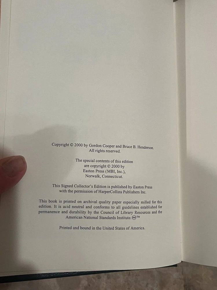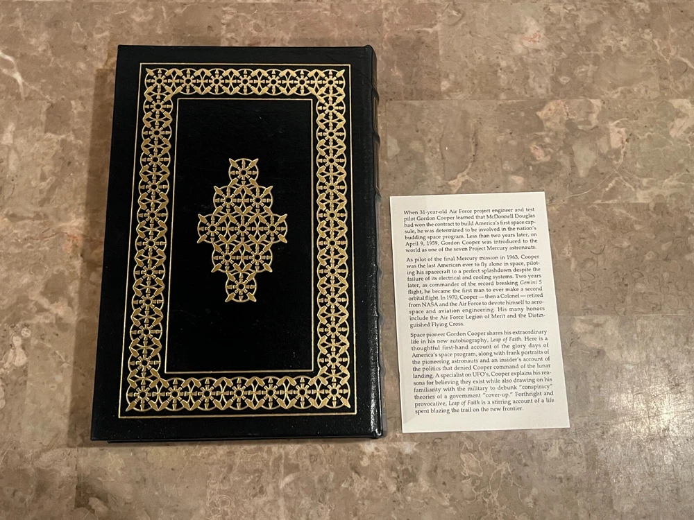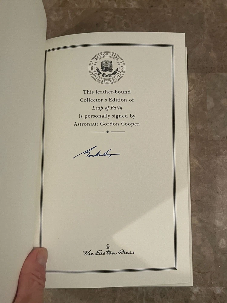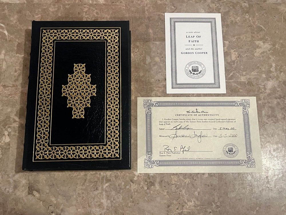 EASTON PRESS Leap of Faith by Gordon Cooper (HC, EASTON PRESS) SIGNED w/ COA & NOTES Adult owned, single owner. Cover and gold gilt have minimal wear around edges and corners. Pages have no writing or rips. Binding is tight. Please see pictures. Books are carefully packaged to prevent damage during shipping and will ship via USPS Media Mail.