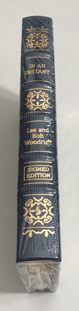 Lee & Bob Woodruff: In an Instant: A Family's Journey of Love and Healing Signed Edition Easton Press Leatherbound Collector's Edition Lee Woodruff and Bob Woodruff live in Westchester County, New York, with their four children. Bob Woodruff was named co-anchor of ABC’s World News Tonight in December 2005. On January 29, 2006, while reporting on U.S. and Iraqi security forces, Mr. Woodruff was seriously injured by a roadside bomb that struck his vehicle near Taji, Iraq. Lee Woodruff is a public relations executive and freelance writer. This elegant book features full leather binding, 22 kt gold stamping to covers and spine, silk endpapers, a satin ribbon page marker, and all edges gilt. Book is signed by the authors on a special signature page. Book is in new condition (in publisher's shrinkwrap).