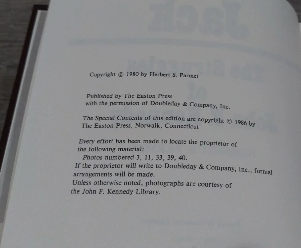 EASTON Library Of The Presidents JOHN F. KENNEDY Vol. 1&2 Struggles & Presidency is in excellent collectible condition! A fine compliment to one's bookshelf! Stickers have been placed on inside cover of both books, as shown in pictures. One of the stickers is signed by one 'Hoffman'. Please refer to pictures for conditional considerations!!!