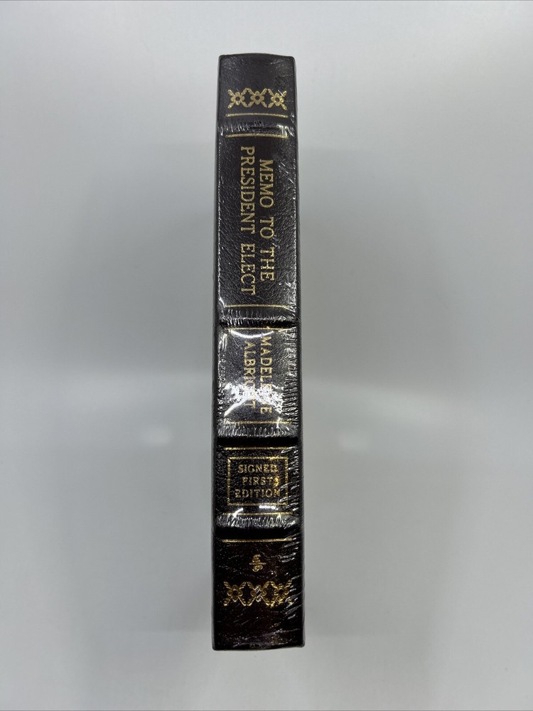 >>> GET IT NOW & ADD IT TO YOUR LIBRARY TODAY! <<< Leather-bound Easton Press collector's SIGNED FIRST EDITION of Memo to the President Elect: How We Can Restore America's Reputation and Leadership by Madeleine Albright (SFE) One of 1025 hand-numbered copies signed by the Author, the late Secretary of State, Margaret Albright (exact copy number unknown due to the book being sealed) Condition – Still sealed in publisher's original shrinkwrap ; original Certificate of Authenticity (COA) enclosed inside; loose blank bookplate included; may have minor shelf wear/marks & some dust from storage; please see all photos for details - photos are part of description; from an adult only smoke & pet free household; owl not included Shipping – boxed USPS Media Mail or Priority Mail (selectable at checkout); no international shipping (please do not ask) Payment – within two days from the listing's end (Best Offer acceptance) unless prior arrangements have been made No Returns/Sold 'As Is' – please contact me if you have any additional questions/issues or with requests for additional pictures >>> GET IT NOW & ADD IT TO YOUR LIBRARY TODAY! <<< *The only true First Editions (1 st Editions) from Easton Press you can be 100% certain about are books with “Signed First Edition " gilt-stamped on the leather spine or “Signed First Edition " printed on the title page and/or on the signature page. It is impossible to tell if any other Easton Press book is a first edition or first printing. Please keep that in mind and if not sure ask sellers for photos proving their claim. **Easton Press does not provide the actual print date in their books. For "Year Printed" the copyright date is listed (oftentimes from the original Heritage Press editions, rights to which were sold to Easton Press), which may or may not indicate an accurate range for manufacture of the book. ***Please note that Easton Press’s term Collector’s Edition is not synonymous with Limited Edition (LE). The only true Limited Editions from Easton Press are copies hand-numbered on the limitation page (i.e. ‘Number 1 of 1200’ or ‘This edition is strictly limited to a quantity of 1200 copies of which this is number 1’). Please keep that in mind and if not sure ask sellers to prove their claim.