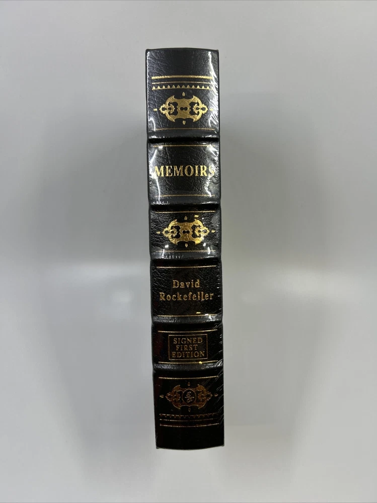 >>> GET IT NOW & ADD IT TO YOUR LIBRARY TODAY! <<< Leather-bound Easton Press collector's SIGNED FIRST EDITION of Memoirs by David Rockefeller (SFE) Limited to 1300 hand-numbered copies personally signed by the author, David Rockefeller Condition – Still sealed in publisher's original shrinkwrap (slight shelf wear) ; original Note & Certificate of Authenticity (COA) enclosed inside; loose blank bookplate included; may have minor shelf wear/marks & some dust from storage; please see all photos for details - photos are part of description; from an adult only smoke & pet free household; owl not included Shipping – boxed USPS Media Mail or Priority Mail (selectable at checkout); no international shipping (please do not ask) Payment – within two days from the listing's end (Best Offer acceptance) unless prior arrangements have been made No Returns/Sold 'As Is' – please contact me if you have any additional questions/issues or with requests for additional pictures >>> GET IT NOW & ADD IT TO YOUR LIBRARY TODAY! <<< *The only true First Editions (1 st Editions) from Easton Press you can be 100% certain about are books with “Signed First Edition " gilt-stamped on the leather spine or “Signed First Edition " printed on the title page and/or on the signature page. It is impossible to tell if any other Easton Press book is a first edition or first printing. Please keep that in mind and if not sure ask sellers for photos proving their claim. **Easton Press does not provide the actual print date in their books. For "Year Printed" the copyright date is listed (oftentimes from the original Heritage Press editions, rights to which were sold to Easton Press), which may or may not indicate an accurate range for manufacture of the book. ***Please note that Easton Press’s term Collector’s Edition is not synonymous with Limited Edition (LE). The only true Limited Editions from Easton Press are copies hand-numbered on the limitation page (i.e. ‘Number 1 of 1200’ or ‘This edition is strictly limited to a quantity of 1200 copies of which this is number 1’). Please keep that in mind and if not sure ask sellers to prove their claim.