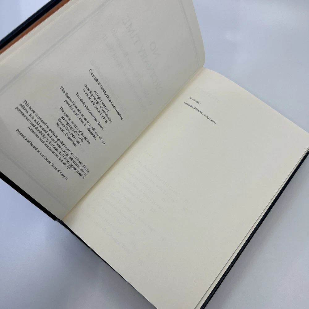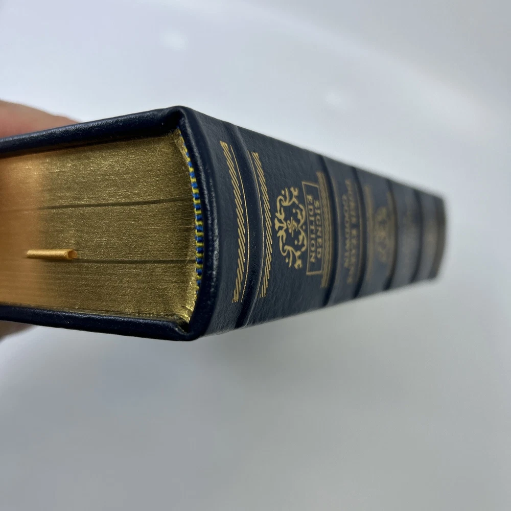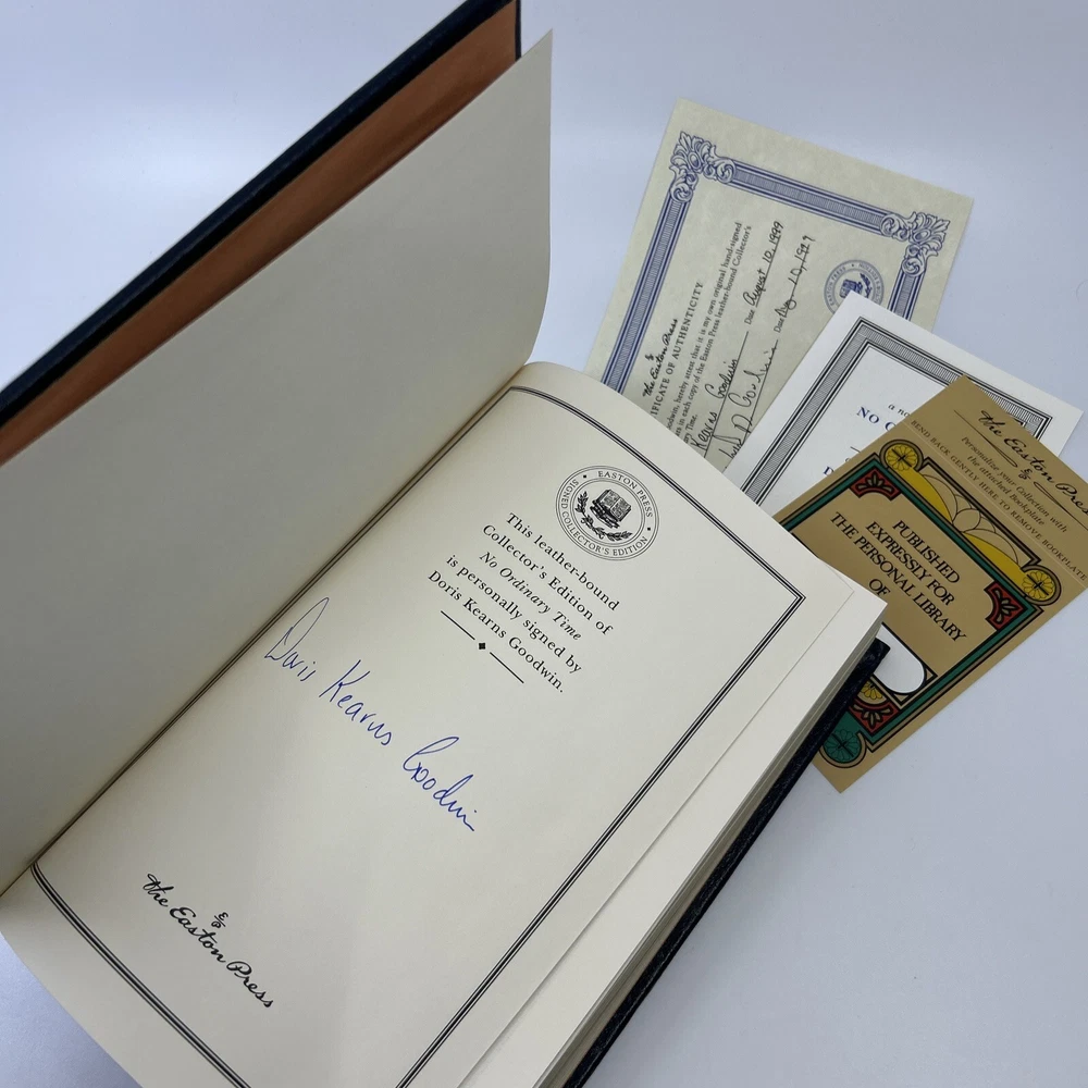 >>> GET IT NOW & ADD IT TO YOUR LIBRARY TODAY! <<< Leather-bound Easton Press SIGNED EDITION of No Ordinary Time: Franklin and Eleanor Roosevelt, The Home Front in World War II by Doris Kearns Goodwin (SE) Condition – Very Good/Excellent; no attached bookplate/no embossed seal/no signatures or markings ; slight shelf wear/marks/scratches/rubbing to page gilt; slight shelf wear/marks/rubbing/bumps to leather covers; original Note & Certificate of Authenticity (COA) included; loose blank bookplate laid in; may have some dust from storage; please see all photos for details - photos are part of description; from an adult only smoke & pet free household; owl not included Shipping – boxed USPS Media Mail or Priority Mail (selectable at checkout); no international shipping (please do not ask) Payment – within two days from the listing's end (Best Offer acceptance) unless prior arrangements have been made No Returns/Sold 'As Is' – please contact me if you have any additional questions/issues or with requests for additional pictures >>> GET IT NOW & ADD IT TO YOUR LIBRARY TODAY! <<< *The only true First Editions (1 st Editions) from Easton Press you can be 100% certain about are books with “Signed First Edition " gilt-stamped on the leather spine or “Signed First Edition " printed on the title page and/or on the signature page. It is impossible to tell if any other Easton Press book is a first edition or first printing. Please keep that in mind and if not sure ask sellers for photos proving their claim. **Easton Press does not provide the actual print date in their books. For "Year Printed" the copyright date is listed (oftentimes from the original Heritage Press editions, rights to which were sold to Easton Press), which may or may not indicate an accurate range for manufacture of the book. ***Please note that Easton Press’s term Collector’s Edition is not synonymous with Limited Edition (LE). The only true Limited Editions from Easton Press are copies hand-numbered on the limitation page (i.e. ‘Number 1 of 1200’ or ‘This edition is strictly limited to a quantity of 1200 copies of which this is number 1’). Please keep that in mind and if not sure ask sellers to prove their claim.