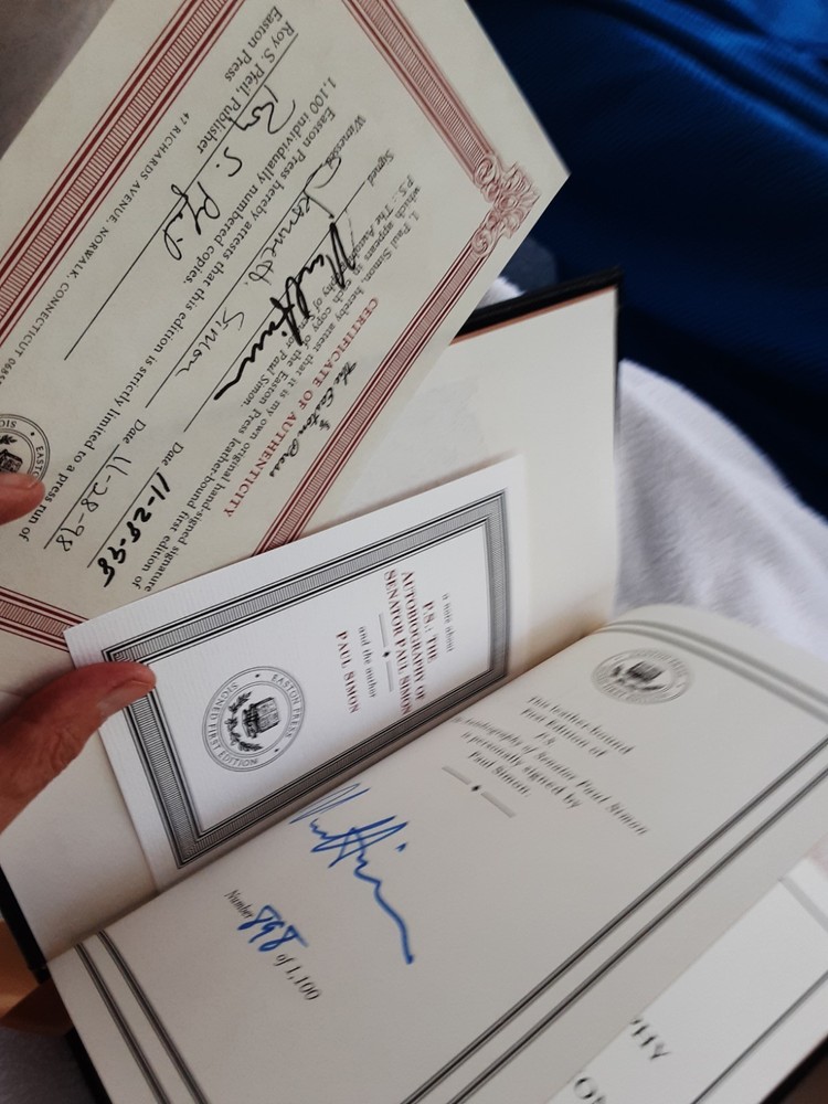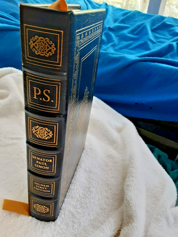 Dive into the compelling narrative of "The Autobiography of Senator Paul Simon" as presented by the distinguished Easton Press. This leather-bound edition not only showcases the seminal events of Senator Simon's political career but also serves as a collector's gem with its designation as a first edition, complete with the author's signature. Crafted in the United States with quality and care, this volume is an original work that has been modified to include the senator's personal touch, enhancing its value to enthusiasts of American politics and history. It's a testament to the enduring legacy of public service and a must-have for aficionados of Law & Government subjects. With Certificate of Authenticity Ghost of a bookplate on inside page otherwise excellent condition no wear.