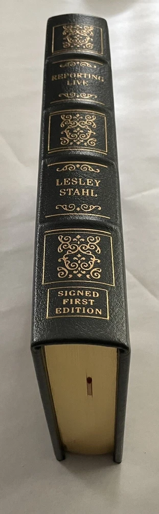 EASTON PRESS Reporting Live by Lesley Stahl SIGNED FIRST EDITION Leatherbound book is in near fine condition (faint edgewear, faint wear to gilt on page edges, no attached bookplate, no embossed seal).