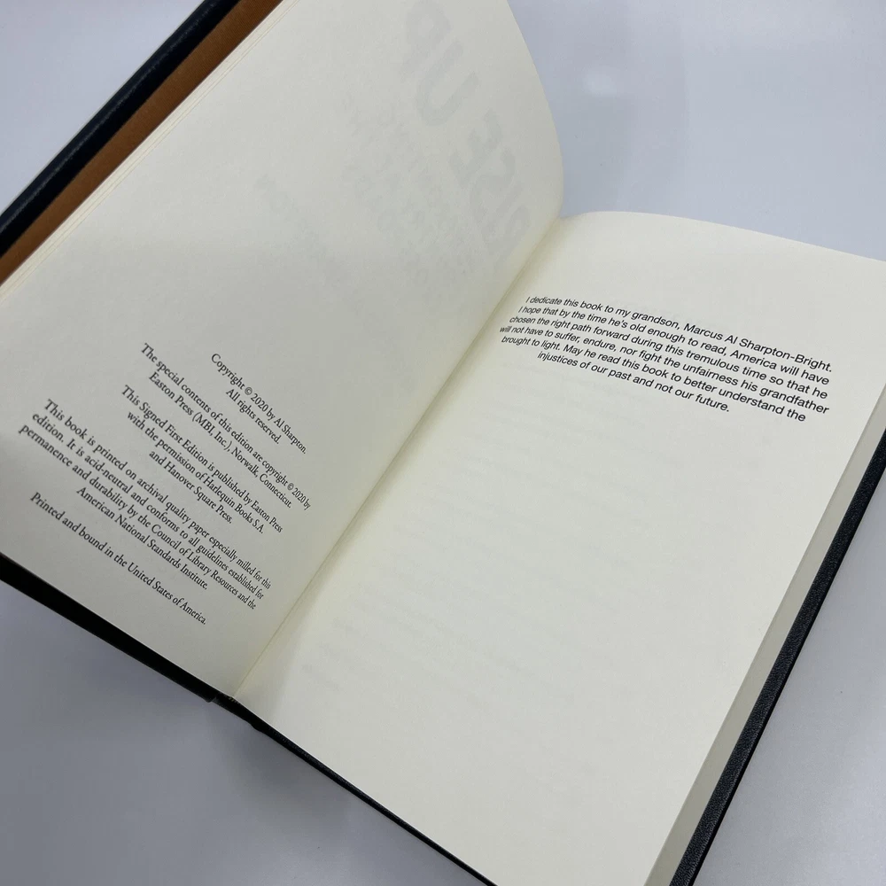 This rare Easton Press collector's edition is a must-have for any serious library! The signed first edition by Rev. Al Sharpton is beautifully bound in leather with gilded pages. Even with minor shelf wear, it remains a striking piece—complete with COA for authenticity. A fantastic find for political history enthusiasts or collectors of fine books. Grab it while you can!