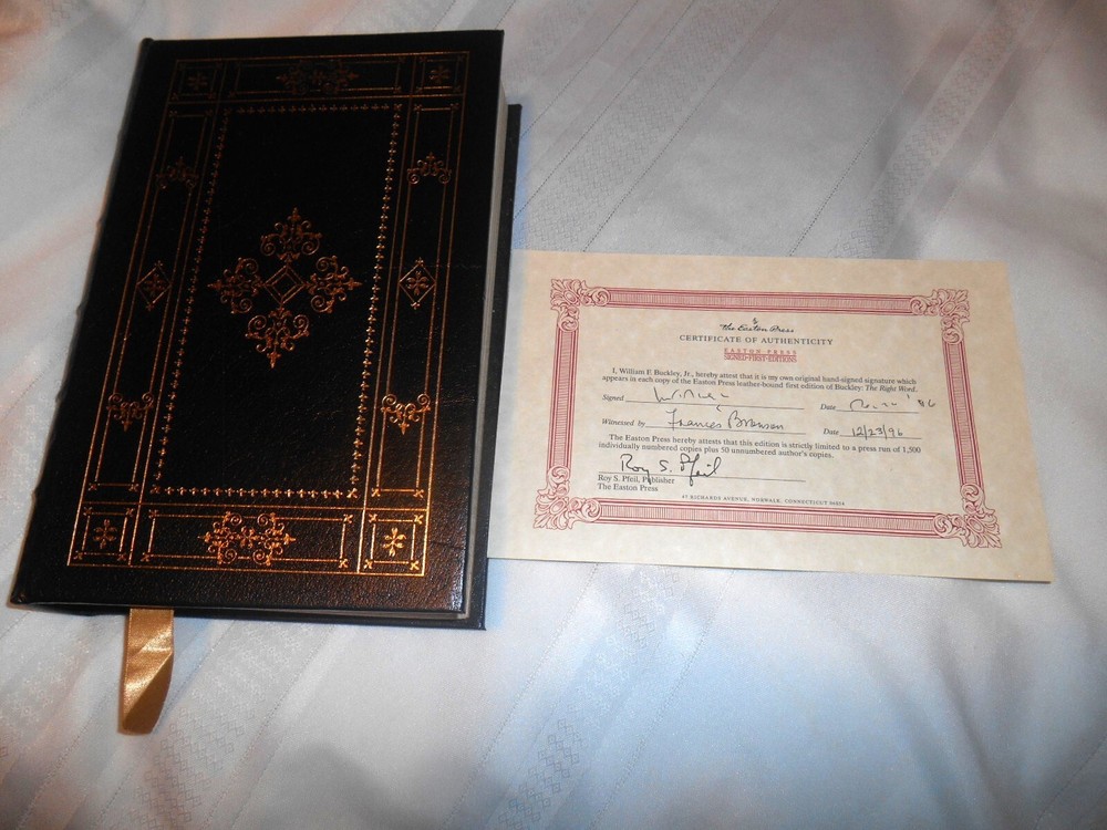 This limited Easton Press edition of Buckley's *The Right Word* is a true collector's gem! The signed copy (#1036/1500) adds incredible value, and the book itself is in excellent shape—just a slight warp on the cover, but nothing major. The Certificate of Authenticity is a nice touch, making it perfect for fans of Buckley or rare book enthusiasts. A fantastic find for any serious collector!