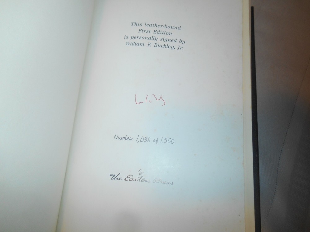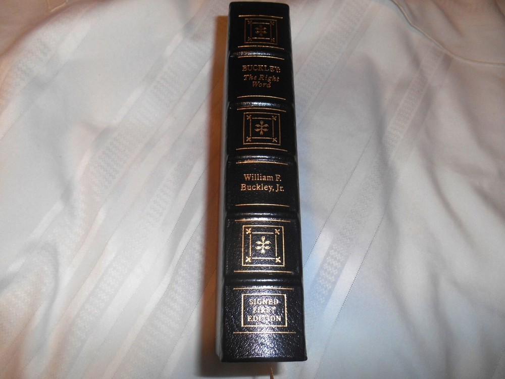This is a rare and highly sought-after book titled "Buckley; The Right Word" by William Buckley Jr., published by Easton Press in a limited collector's edition. The book is numbered #1036/900 and comes with a Certificate of Authenticity. It is a first edition, printed in 1996. The book appears to be in very condition with minimum wear. The cover has a slight warp to it and does not shut completely flat. I'm not a professional book grader, so if you have any questions, please feel free to email me. Also please check out the photos. I have approximately 50 Easton Press books that I acquired that I will be listing in the next several weeks. Many ae signed, so keep checking in.