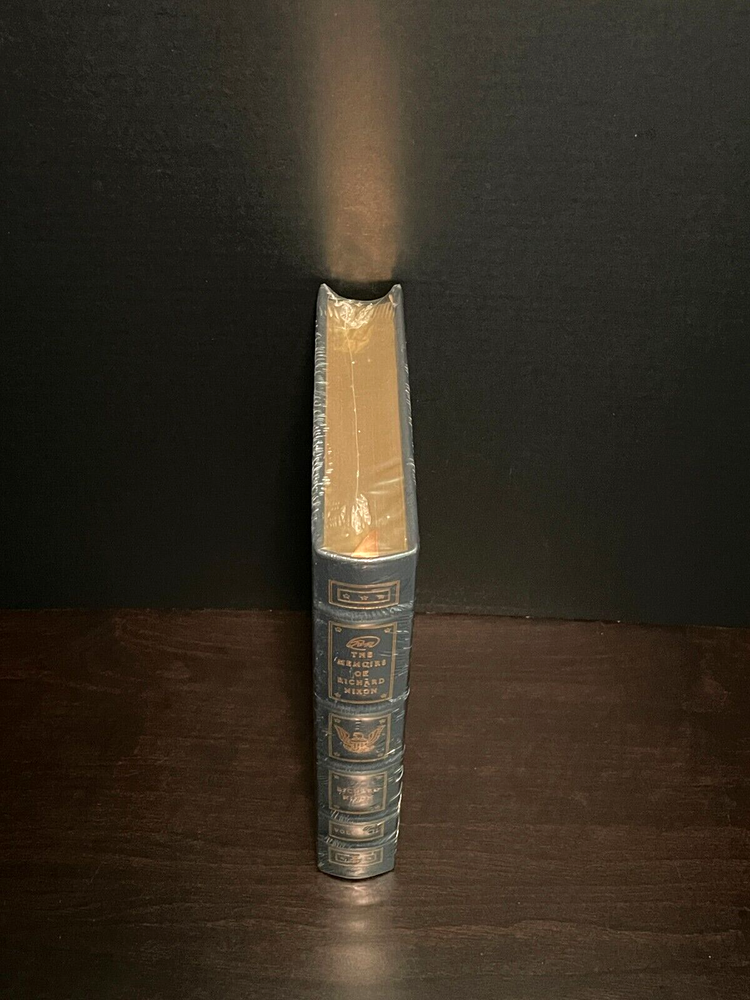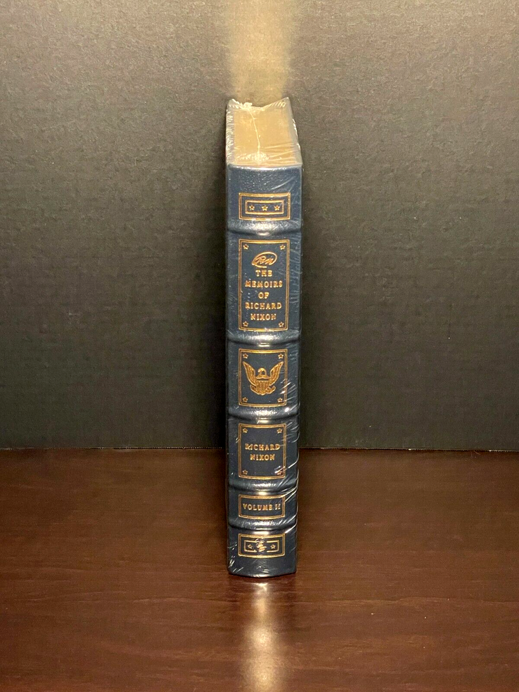 - The Memoirs of Richard Nixon - 37th President of the United States 1969-1974 Volume II By - President Richard Nixon Illustrated with pictures Easton Press The Library of The Presidents Collector's Edition SEALED Genuine Leather FINE - Excellent - As New Never Read - Satin Page Marker unmoved from publisher's placement No writings, stamps, or nameplates from previous ownership Offering from a pet and smoke-free home Only if you have been in the deepest valley, can you ever know how magnificent it is to be on the highest mountain. - Richard Nixon Former President Richard Nixon's bestselling autobiography is an intensely personal examination of his life, public career, and White House years. With startling candor, Nixon reveals his beliefs, doubts, and behind-the-scenes decisions, shedding new light on his landmark diplomatic and domestic initiatives, political campaigns, and historic decision to resign from the presidency. Memoirs, spanning Nixon’s formative years through his presidency, reveals the personal side of Richard Nixon. Witness his youth, college years, and wartime experiences, events which would shape his outward philosophies and eventually his presidency—and shape our lives. Follow his meteoric rise to national prominence and the great peaks and depths of his presidency. Throughout his career Richard Nixon made extensive notes about his ideas, conversations, activities, meetings. During his presidency, from November 1971 until April 1973 and again in June and July 1974, he kept an almost daily diary of reflections, analyses, and perceptions. These notes and diary dictations, quoted throughout, provide a unique insight into the complexities of the modern presidency and the great issues of American policy and politics. ~~~~~~~~~~~~~~~~~~~~~~~~~~ Richard Milhous Nixon was the 37th President of the United States from 1969 to 1974. During the Second World War, he served as a Navy lieutenant commander in the Pacific, before being elected to the Congress, and then serving as the 36th Vice President of the United States in the administration of Dwight D. Eisenhower from 1953 to 1961. After an unsuccessful presidential run in 1960, Nixon was elected in 1968, and re-elected to a second term in 1972. Under President Nixon, the United States followed a foreign policy marked by détente with the Soviet Union and by the opening of diplomatic relations with the People's Republic of China. Nixon successfully negotiated a ceasefire with North Vietnam, effectively ending the longest war in American history. Domestically, his administration faced resistance to the Vietnam War. In the face of likely impeachment by the United States House of Representatives and conviction by the Senate for the Watergate scandal, Nixon resigned. His successor, Gerald Ford, issued a controversial pardon for any federal crimes Nixon may have committed while in office. Nixon is the only person to be elected twice to the office of the presidency and the vice presidency, and is the only president to have resigned the office. Nixon suffered a stroke on April 18, 1994 and died four days later at the age of 81. Exclusive Leather-Bound Collector's Edition Genuine Premium Leather Decorative Endsheets Permanent Satin Ribbon Page Marker 22-karat Gold Gilded Page Edges Smythe-sewn Pages for Strength and Durability Luxurious Spines Hubbed with Raised Ring *** See our other listings for more Easton Press material SHIPPING / HANDLING: All purchases will be shipped with tracking number for confirmation via USPS media mail unless otherwise requested, with special care taken during packing to ensure you receive the books as described. Packaging will be a hard box for care as we do not use shipping bags or envelopes. For multiple purchases, when possible every effort will be made to combine shipping at a discount.
