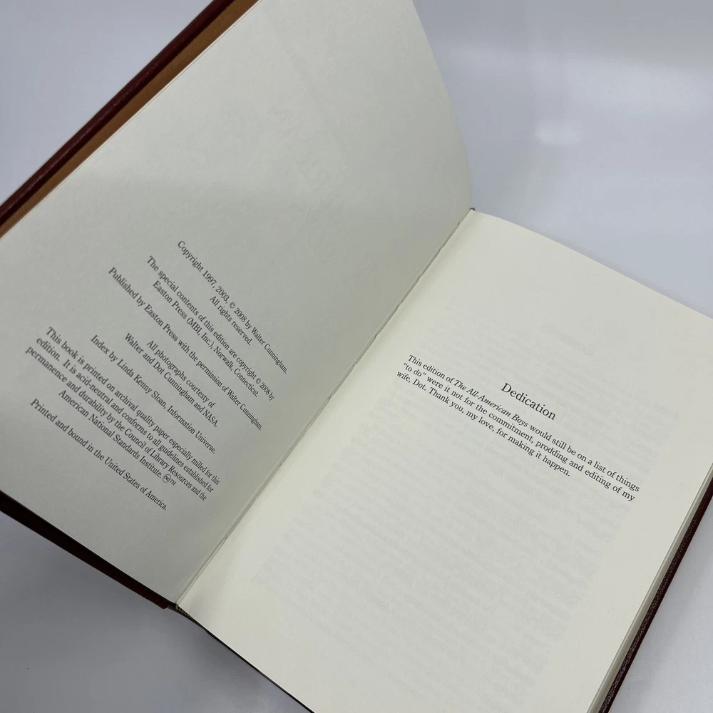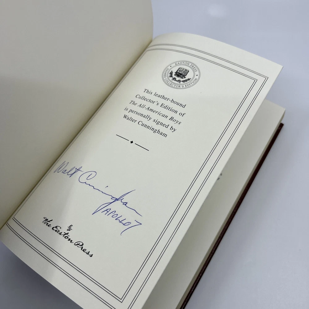 This stunning Easton Press leather-bound edition of *The All-American Boys* is a must-have for collectors—signed by astronaut Walter Cunningham himself! The book is in excellent condition with only minor shelf wear, and it includes the original COA plus a loose bookplate. A rare gem for space history enthusiasts—don’t miss the chance to own this beautifully crafted piece of Apollo 7 legacy!