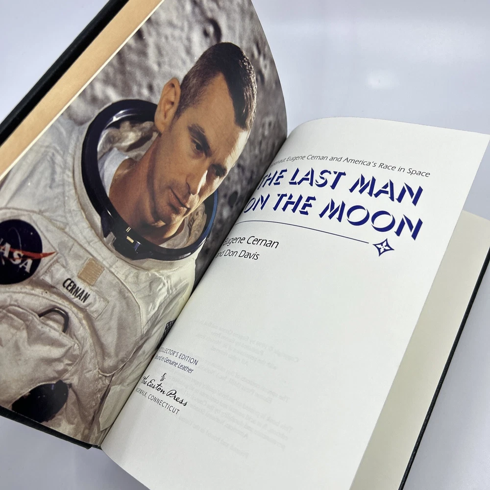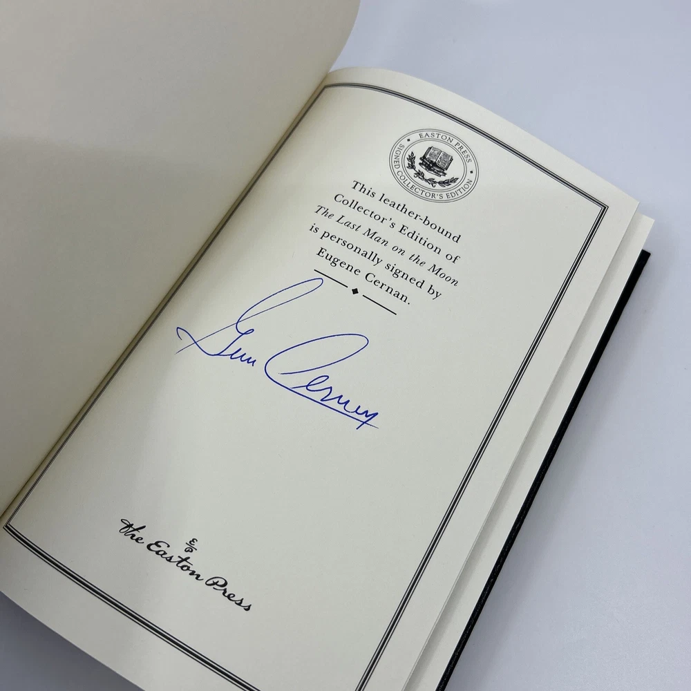 >>> GET IT NOW & ADD IT TO YOUR LIBRARY TODAY! <<< Leather-bound Easton Press collector's SIGNED EDITION of The Last Man on the Moon by Eugene Cernan (SE) Personally signed by the author, an American astronaut Jeffrey Archer Edition without SIGNED EDITION disclaimer on the spine that matches the 6-volume Astronaut's Library spines Condition – Very Good/Excellent; no attached bookplate/no embossed seal/no signatures or markings ; slight shelf wear/marks/scratches to page gilt & leather covers ; original Certificate of Authenticity (COA) included ; loose blank bookplate laid in; may have some dust from storage; please see all photos for details - photos are part of description; from an adult only smoke & pet free household; owl not included Shipping – boxed USPS Media Mail or Priority Mail (selectable at checkout); no international shipping (please do not ask) Payment – within two days from the listing's end (Best Offer acceptance) unless prior arrangements have been made No Returns/Sold 'As Is' – please contact me if you have any additional questions/issues or with requests for additional pictures >>> GET IT NOW & ADD IT TO YOUR LIBRARY TODAY! <<< *The only true First Editions (1 st Editions) from Easton Press you can be 100% certain about are books with “Signed First Edition " gilt-stamped on the leather spine or “Signed First Edition " printed on the title page and/or on the signature page. It is impossible to tell if any other Easton Press book is a first edition or first printing. Please keep that in mind and if not sure ask sellers for photos proving their claim. **Easton Press does not provide the actual print date in their books. For "Year Printed" the copyright date is listed (oftentimes from the original Heritage Press editions, rights to which were sold to Easton Press), which may or may not indicate an accurate range for manufacture of the book. ***Please note that Easton Press’s term Collector’s Edition is not synonymous with Limited Edition (LE). The only true Limited Editions from Easton Press are copies hand-numbered on the limitation page (i.e. ‘Number 1 of 1200’ or ‘This edition is strictly limited to a quantity of 1200 copies of which this is number 1’). Please keep that in mind and if not sure ask sellers to prove their claim.