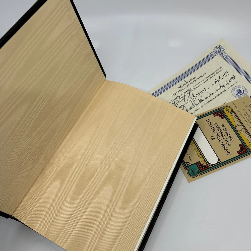 This stunning Easton Press collector's edition is a must-have for space enthusiasts—gorgeous leather binding, gilded pages, and personally signed by astronaut Eugene Cernan himself! The condition is excellent with minor shelf wear, and it includes the original certificate. A true treasure for any library, capturing the legacy of the last man to walk on the moon. Don’t miss out!