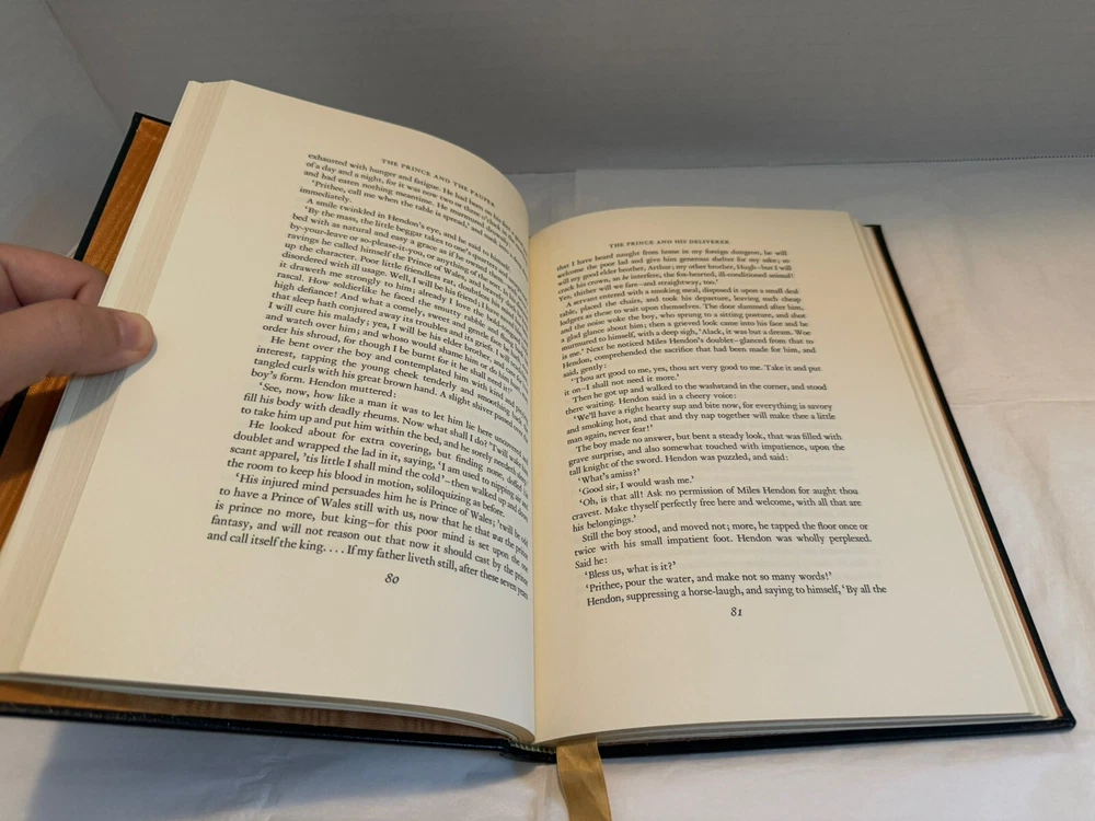 Item in VERY GOOD condition, see pics The Prince and the Pauper is a novel by American author Mark Twain . It was first published in 1881 in Canada, before its 1882 publication in the United States. The novel represents Twain's first attempt at historical fiction . The plot concerns the ascension of nine-year-old Edward VI of England in 1547 and his interactions with look-alike Tom Canty , a London pauper who lives with his abusive, alcoholic father.