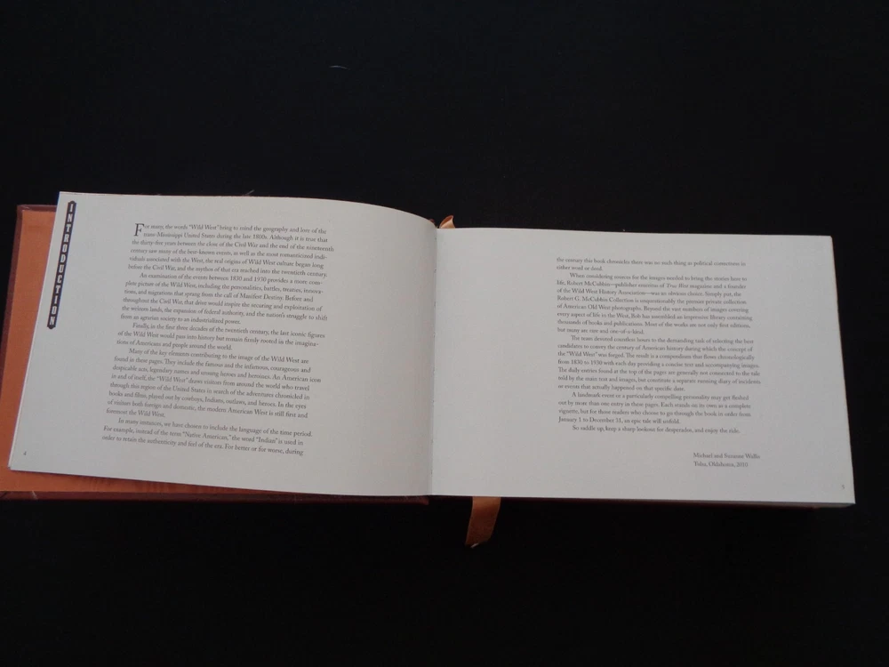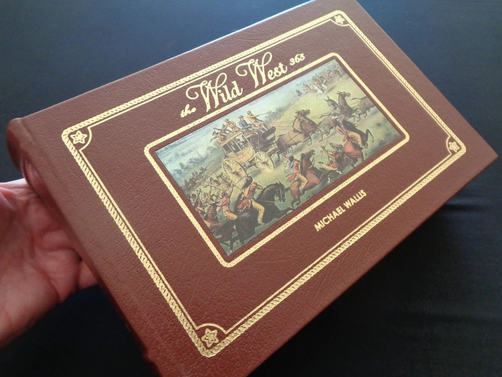 Leather-bound Easton Press/ Harry N. Abrams edition of The Wild West: 365 Days by Michael Wallis From Buffalo Bill, Wild Bill Hickok, and Annie Oakley to Jesse James, Butch Cassidy and Billy the Kid, America's old West comes alive in an extraordinary collection featuring in-depth commentary and hundreds of rare, archival images. Here are the great gunfighters, lawmen, outlaws, Pony Express riders, sharpshooters and Native American chiefs - a stunning portrayal of an enduring era in American history. Previous owner's name on bookplate - see photos You can buy Easton Press bookplates and put your own over this one if you desire Overall very good condition Beautiful endpapers Gold around all the page edges Heavy, high quality leather binding Will be carefully wrapped and shipped in a box for safe transit