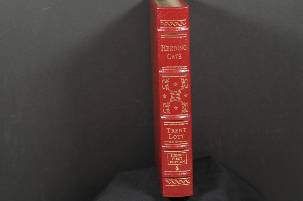 Herding Cats A Life in Politics Author: LOTT, Trent Title: Herding Cats A Life in Politics Publication: Norwalk, Connecticut: The Easton Press, (2005) Description: Hardcover. First edition. Full leather gilt. Fine with publisher's information laid in. Copy 1,353 of 1600. Signed by the author. Book is in excellent condition. There is no attached bookplate and no embossed seal. Includes certificate of authenticity and collector note card issued by Easton Press. See pictures regarding the condition. Please ask questions before buying it. Take a look at my other Easton Press books. I'll combine shipping. Check my feedback and bid with confidence. PAYMENT POLICY If you have feedback of less than 5, please contact me before buying.