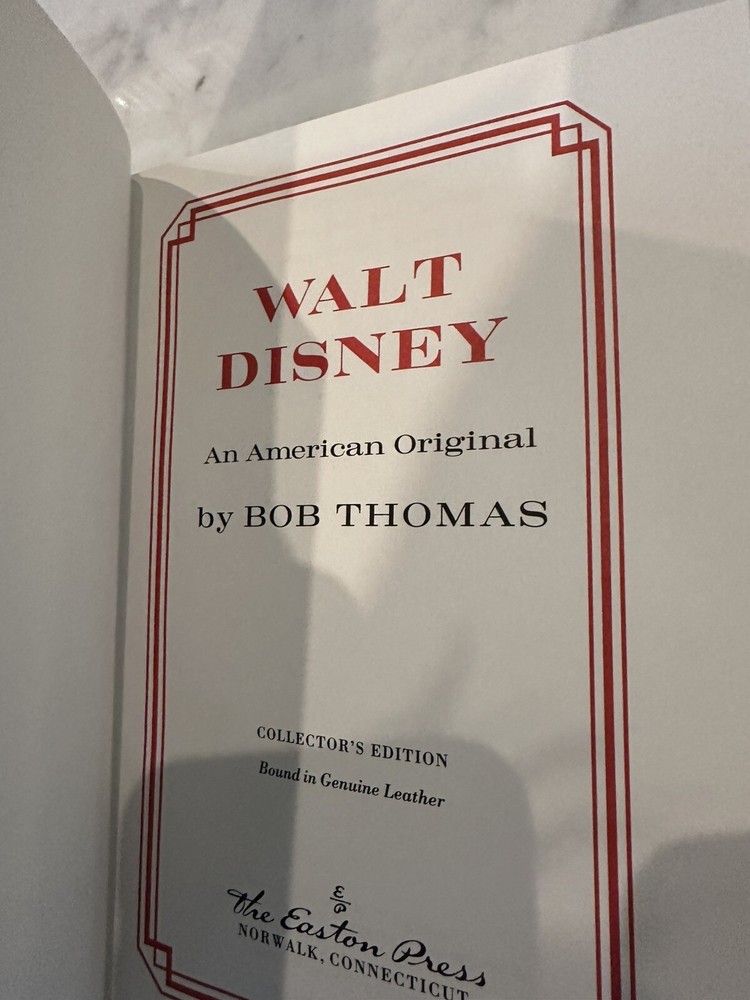 This is a leather bound Easton Press edition of "Walt Disney: An American Original" by Bob Thomas. The book is in VG condition with no notable imperfections of the leather, gilt, or page edges. It jus...