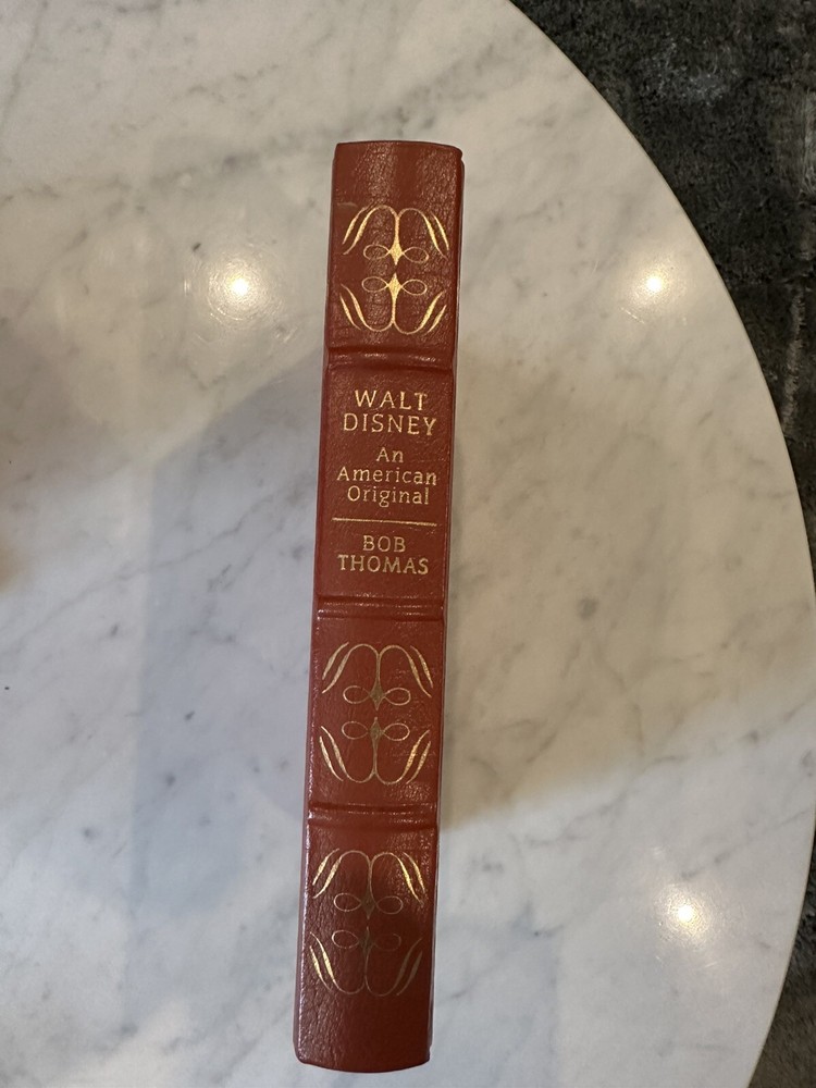 This is a leather bound Easton Press edition of "Walt Disney: An American Original" by Bob Thomas. The book is in VG condition with no notable imperfections of the leather, gilt, or page edges. It just has a little general shelfwear.