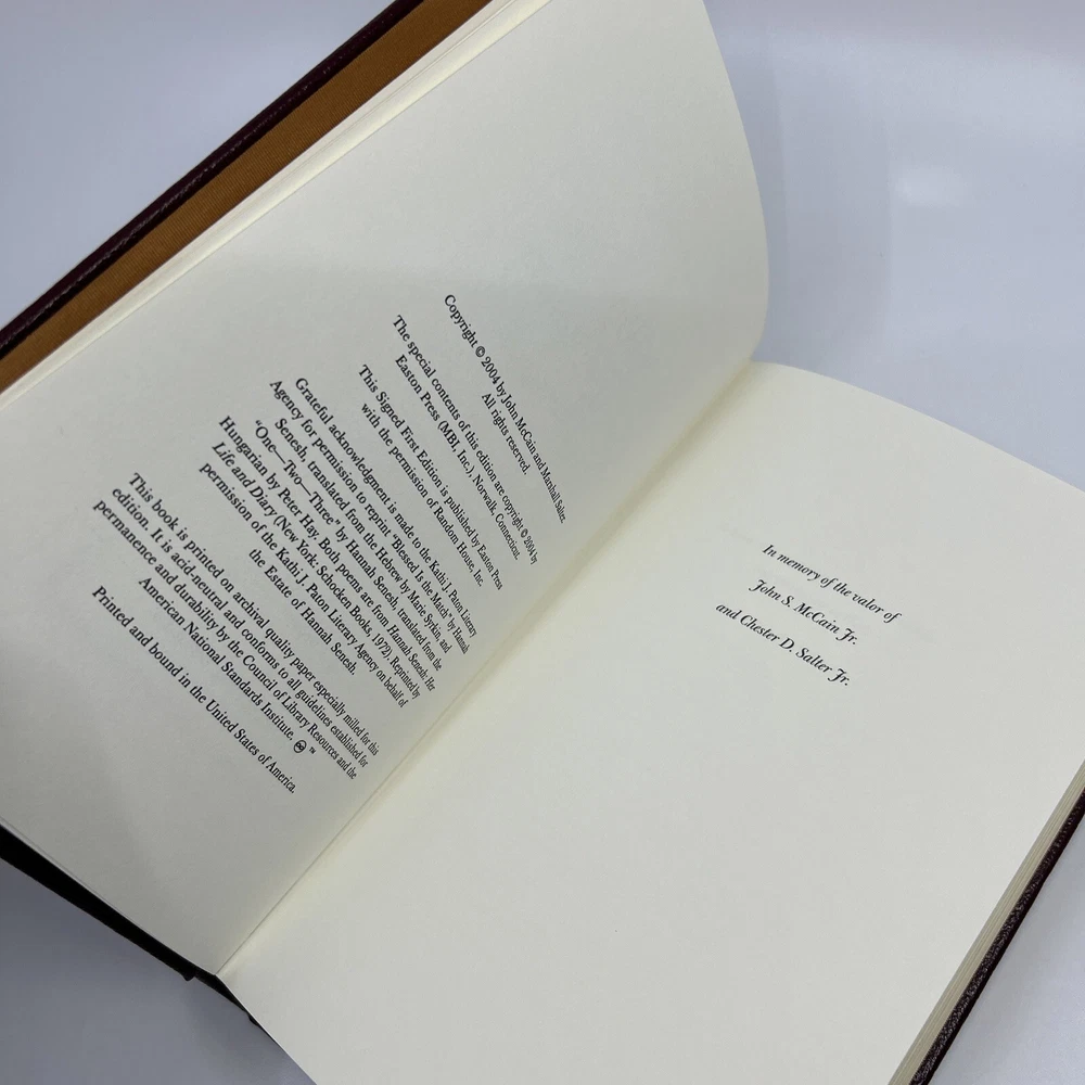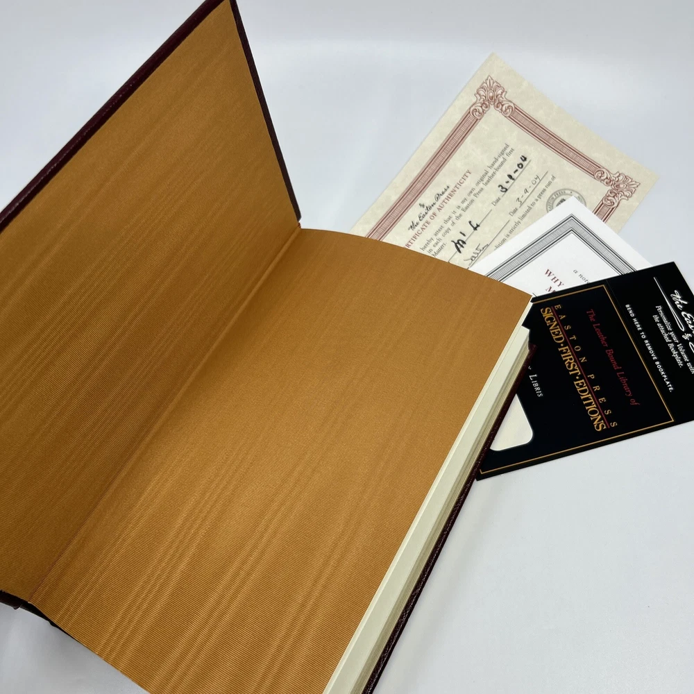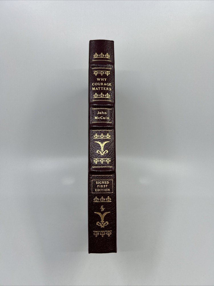 >>> GET IT NOW & ADD IT TO YOUR LIBRARY TODAY! <<< Leather-bound Easton Press collector's SIGNED FIRST EDITION of Why Courage Matters by John McCain (SFE) Condition – Very Good/Excellent; no attached bookplate/no embossed seal/no signatures or markings ; slight shelf wear/marks/scratches/rubbing to page gilt; slight shelf wear/marks/rubbing/bumps to leather covers ; original Note & Certificate of Authenticity (COA) included ; loose blank bookplate laid in; may have some dust from storage; please see all photos for details - photos are part of description; from an adult only smoke & pet free household; owl not included Shipping – boxed USPS Media Mail or Priority Mail (selectable at checkout); no international shipping (please do not ask) Payment – within two days from the listing's end (Best Offer acceptance) unless prior arrangements have been made No Returns/Sold 'As Is' – please contact me if you have any additional questions/issues or with requests for additional pictures >>> GET IT NOW & ADD IT TO YOUR LIBRARY TODAY! <<< *The only true First Editions (1 st Editions) from Easton Press you can be 100% certain about are books with “Signed First Edition " gilt-stamped on the leather spine or “Signed First Edition " printed on the title page and/or on the signature page. It is impossible to tell if any other Easton Press book is a first edition or first printing. Please keep that in mind and if not sure ask sellers for photos proving their claim. **Easton Press does not provide the actual print date in their books. For "Year Printed" the copyright date is listed (oftentimes from the original Heritage Press editions, rights to which were sold to Easton Press), which may or may not indicate an accurate range for manufacture of the book. ***Please note that Easton Press’s term Collector’s Edition is not synonymous with Limited Edition (LE). The only true Limited Editions from Easton Press are copies hand-numbered on the limitation page (i.e. ‘Number 1 of 1200’ or ‘This edition is strictly limited to a quantity of 1200 copies of which this is number 1’). Please keep that in mind and if not sure ask sellers to prove their claim.