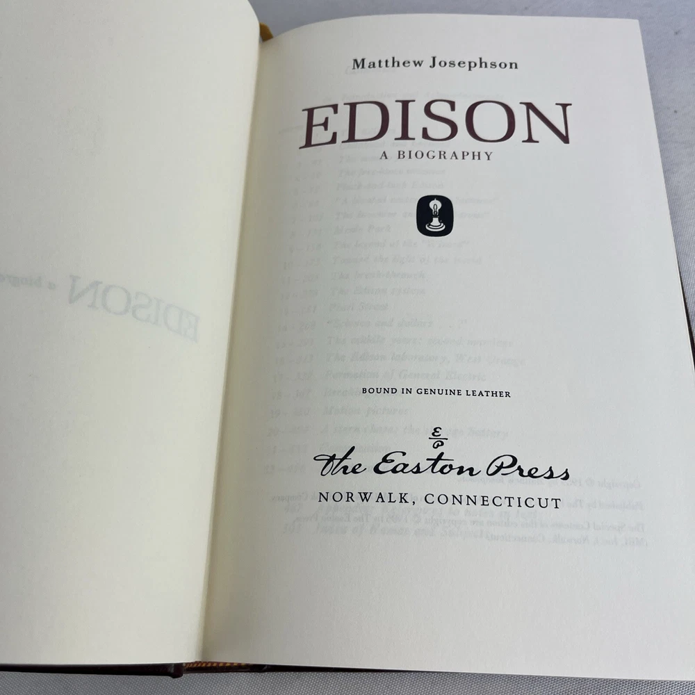 EDISON A Biography - Matthew Josephson - Easton Press - Leather Bound - 1986...