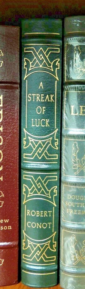 For your consideration, a FINE, UNREAD copy of A STREAK OF LUCK A BIOGRAPHICAL MASTERPIECE OF THOMAS EDISION THE GREAT INVENTOR BY ROBERT CONOT WITH BEAUTIFUL CLASSIC ILLUSTRATIONS IN AN EASTON PRESS HEIRLOOM VERSION FROM THEIR GREAT LIVES LIMITED EDITIONS SERIES LONG OUT OF PRINT A BEAUTIFUL BOOK WITH EXQUISITE ILLUSTRATIONS - PERFECT FOR THAT GIFT THAT WILL LAST FOR GENERATIONS TO ENJOY! Published by The Easton Press . THIS IS A TRUE COLLECTOR'S EDITION PUBLISHED BY THE EASTON PRESS IN FULL BLUE AND EXQUISITE DESIGNS IN 22KT GOLD LEATHER, ENDPAPERS, HUBBED SPINE, SATIN RIBBON, 22KT GILDING OF TITLES, COVER DECORATIONS AND PAGE ENDS, ARCHIVAL QUALITY PAPER. THIS RARE AND EXCEPTIONAL BOOK IS IN FINE CONDITION, BEAUTIFUL! YOUR SATISFACTION IS GUARANTEED! A great collectible Easton Press title with excellent shelf appeal. S&H IS $4 FOR THIS FINE BOOK in the US ., others set after auction closes. I accept Paypal. Plse check my other fine book listings of Easton Press and Franklin Library full leather classic collector's editions and save on combined shipping. Bid with confidence. Add a map to your own listings. FREE Trial!