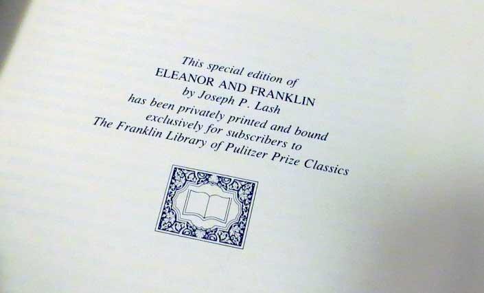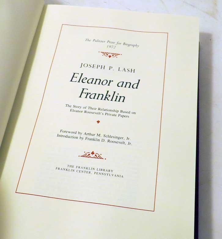 ELEANOR AND FRANKLIN BY JOSEPH LASH , FRANKLIN LIBRARY PULITZER PRIZE, LEATHER ELEANOR AND FRANKLIN BY JOSEPH LASH , FRANKLIN LIBRARY PULITZER PRIZE, LEATHER Description Topdog Presents: Always exciting stuff! Please click on the pictures to see more details. Franklin Library Pulitzer Prize First Edition (these editions do not have the silk moire fabric endpapers) bound in fine genuine leather all page edges gilded with 22 karat gold raised spine hubs sewn-in satin ribbon bookmarks archival quality acid-free paper decorative endpapers thread-sewn pages for strength and durability “Eleanor and Franklin: The Story of Their Relationship,” based on Eleanor Roosevelt’s private papers, is a highly acclaimed biography written by Joseph P. Lash1. Let me share some details about this fascinating book: Author: Joseph P. Lash (1909–1987) was secretary and confidant to Eleanor Roosevelt. He won the Pulitzer Prize and National Book Award in biography for this work. Focus: The biography delves into Eleanor Roosevelt’s complex relationship with her husband, Franklin D. Roosevelt (FDR). It covers their forty-five-year marriage, from her birth in 1884 to FDR’s death in 1945. Research Basis: Lash drew extensively from Eleanor’s personal papers and Hyde Park documents to reveal new dimensions of their marriage. Impact: The Roosevelts’ relationship significantly influenced American history during pivotal times, including the Great Depression and World War II. New condition! . Please see the photos they are part of the description. FLAT RATE S&H $8 in the US. Click images to enlarge Payment Payments We add $1 handling fees for every additional item in combined shipping. A total cost of a combined shipping will be calculated based on a combined parcel weight and current USPS shipping rates. Payments are due within 7 days of auctions close, no exceptions We accept PayPal . Shipping Shipping in the US WHEN: We try to ship in 2 days (excluding weekends and holidays). COURIER: USPS International Shipping WHEN: We try to ship the next day (excluding weekends and holidays) COURIER: USPS WHERE: We will ship Worldwide CUSTOMS FEES if any are buyers responsibility. Customs form will show total you paid by PayPal and price for your purchases. We always mark parcels as "used toys". Please do not ask us to low declared value, it defeats the whole idea of shipping fully insured parcel . If you are paying by PayPal parcels with a total value under $750 will be shipped by Registered Mail or First Class International (delivery time up to 4 weeks) or if they weight over 4 pounds will be shipped FULLY INSURED by Priority Mail (delivery time 6-14 days non guaranteed) over $750 will be shipped FULLY INSURED by Express Mail with a signature confirmation (delivery time 4-7 days) The International bidders might want to contact us about shipping cost prior to placing their bids. We will ship to the address listed in your eBay profile under "Shipping Details". It's buyers responsibility to provide a correct shipping address. All returned parcels because of " a wrong shipping address" parcels will be re-sent at the buyer's expense. Please do not ask us to ship to the address not listed in your eBay profile, we will not do it unless we know you from previous transactions. Postal Insurance All domestic parcels with a total over $50 (for Priority mail) and $25 (for First class and Parcel Select) will be insured: $1 per up to $100 of the total (for example if total is $256 , postal insurance will be $3) All International parcels will be insured (no exceptions): $2 per $100 of the total for example if total is $256 , postal insurance will be $6) Lost & Damaged Claims For lost parcels, you must wait for 21 days domestic (US) and 45 days for International shipments. For shipments to Italy , you must wait 60 days before filing. Damage claims can be filed immediately. All claims should be submitted within 90 days from the date of shipment. All International parcels will be insured with U-PIC, please do not file a "not received "claim with PayPal, just contact us to resolve your problem. Terms of Sale Refunds & Returns 100% Satisfaction Guarantee that the item is original and meets the detailed description! Returns to be made within 30 Days of Receipt (including the cases when parcel was hold at PO by buyer's request), after that a sale considered to be final. Buyer pays return shipping cost. If item was damaged in transit you should not return it. You should submit an insurance claim to get a compensation. Please do not send us back broken items. If you need an assistance with your claim please contact us. All returned items should have a tracking number and be fully insured. We reserve right to replace defective item or refund money (less S&H) Pickups We do not do any pickups. As Is If auction marked "AS IS", it means that Liquest Group Inc. shall not be responsible for the correct description, authenticity, genuineness of, or defect in any lots, and makes no warranty in connection therewith. As no warranty is given with any lot, therefore no sale is invalid or avoidable by reason of any fault in any lot or by reason of any lot being incorrectly described (in the ad), and no compensation may be paid for any such fault or error in description or any imperfection not noted. Images sell! Get Supersized Images & Free Image Hosting Create your brand with Auctiva's Customizable Templates. Attention Sellers - Get Templates Image Hosting, Scheduling at Auctiva.com. Track Page Views With Auctiva's Counter
