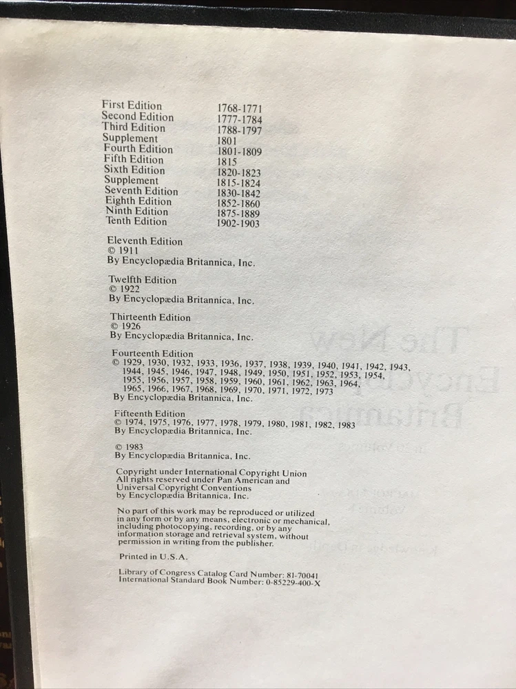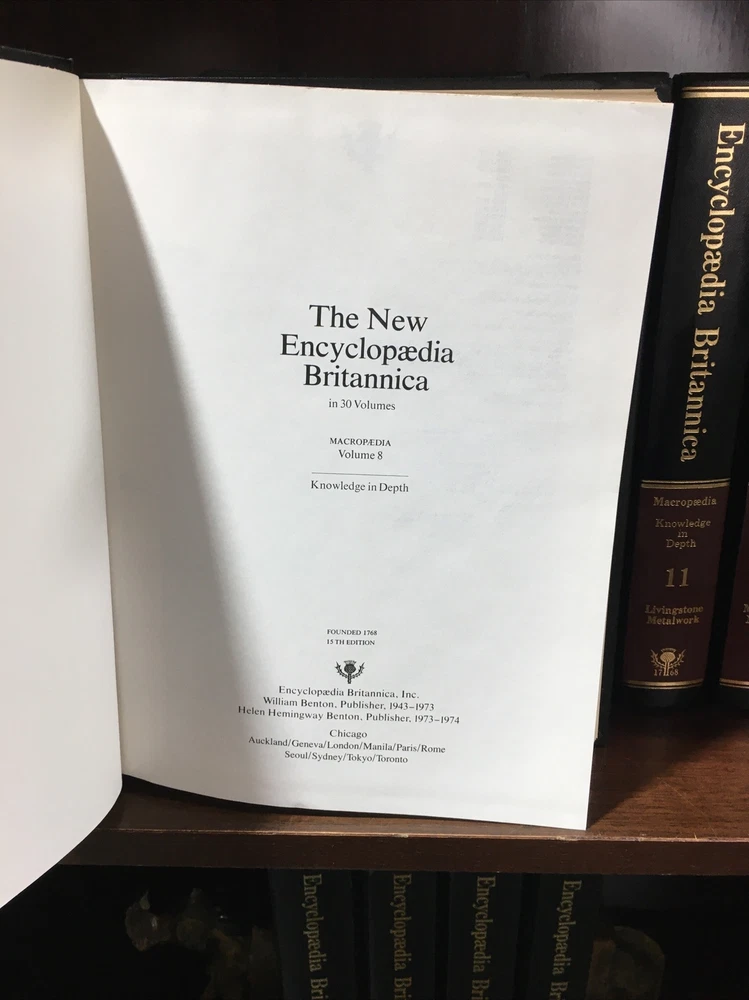 ENCYCLOPEDIA BRITANNICA MACROPAEDIA 19 VOLS 15TH EDITION 1983 LEATHER BOUND VERY GOOD CONDITION -- CLEAN COPY/NO MARKINGS ON THE INSIDE (see pics) *Item will be protected well for shipping and comes with a tracking number for confirmation.* I ship out items every day so expect a quick delivery!
