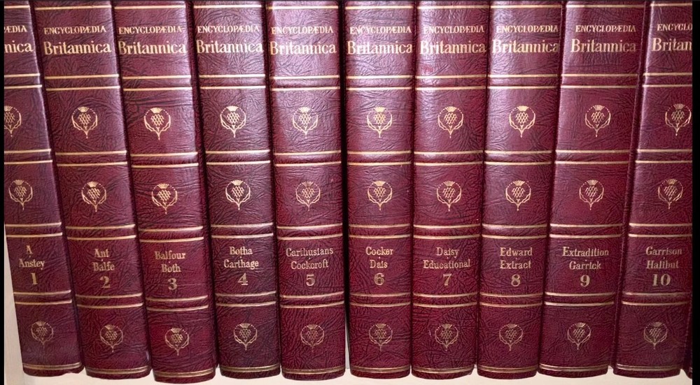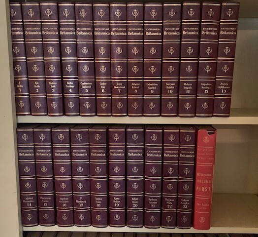 1967 Encyclopedia Britannica Complete set of 23 plus index Brown leather cover Index has dust jacket From family library Will ship in two boxes