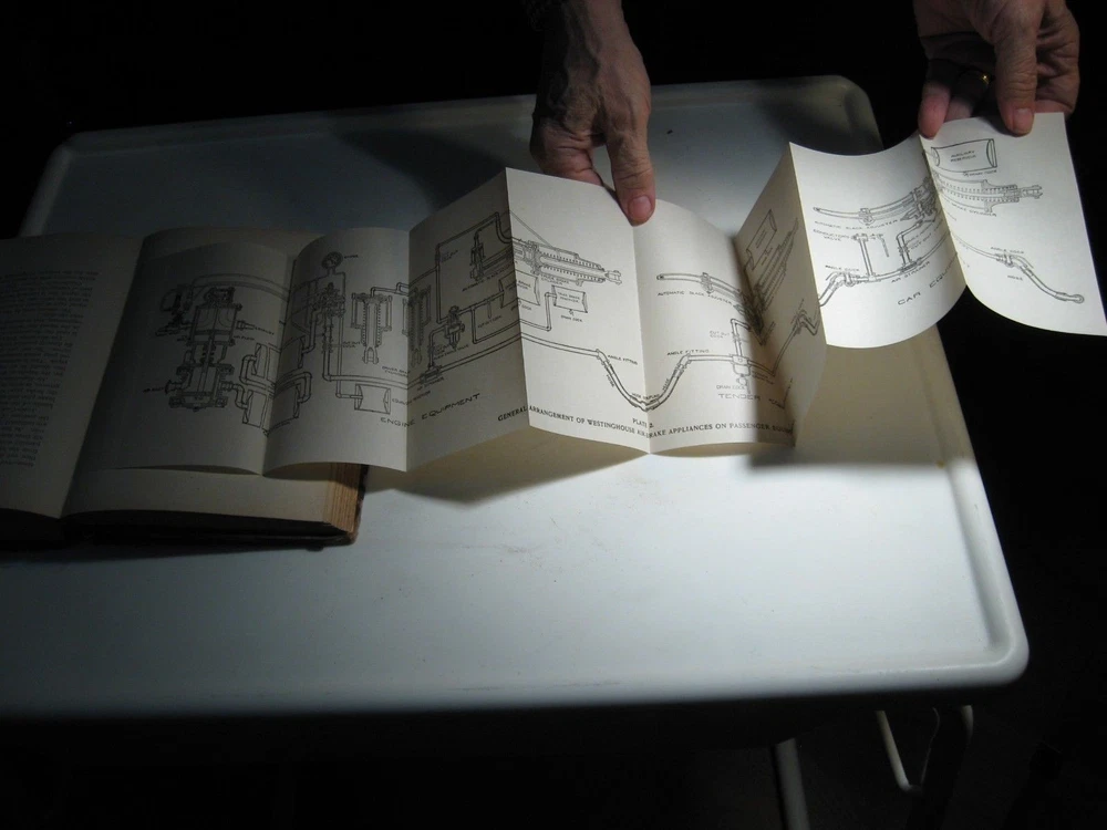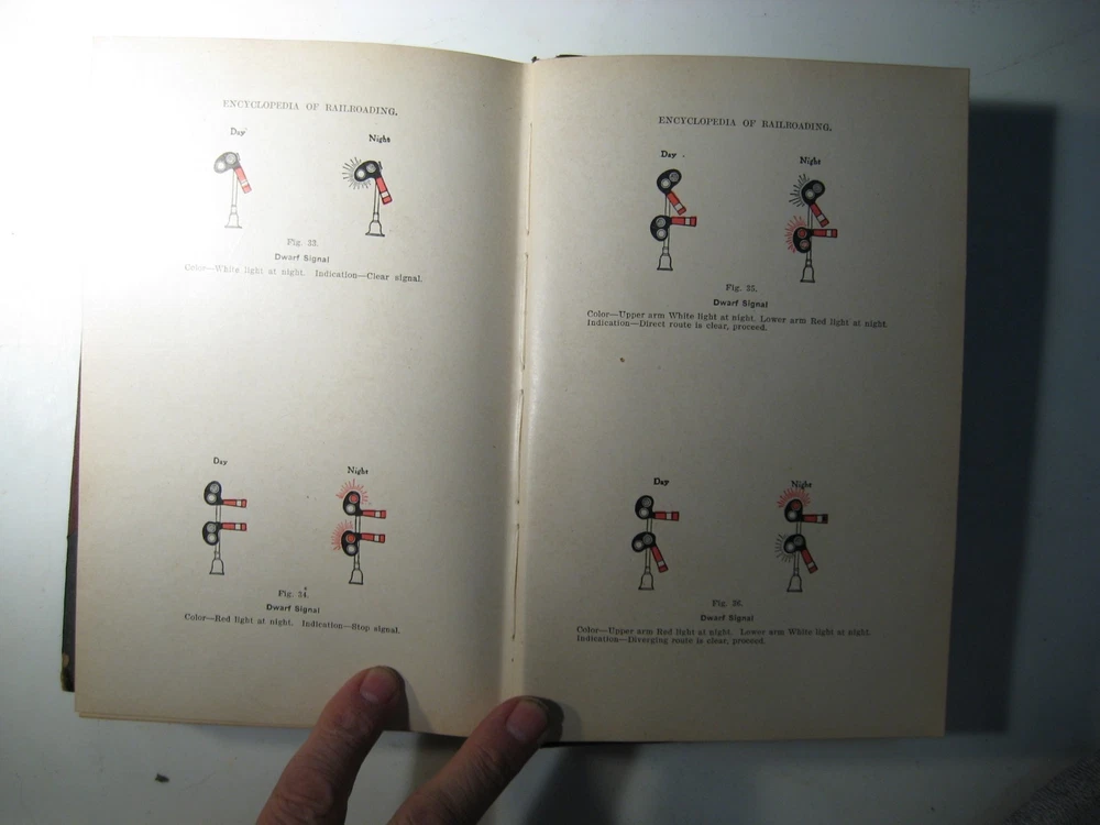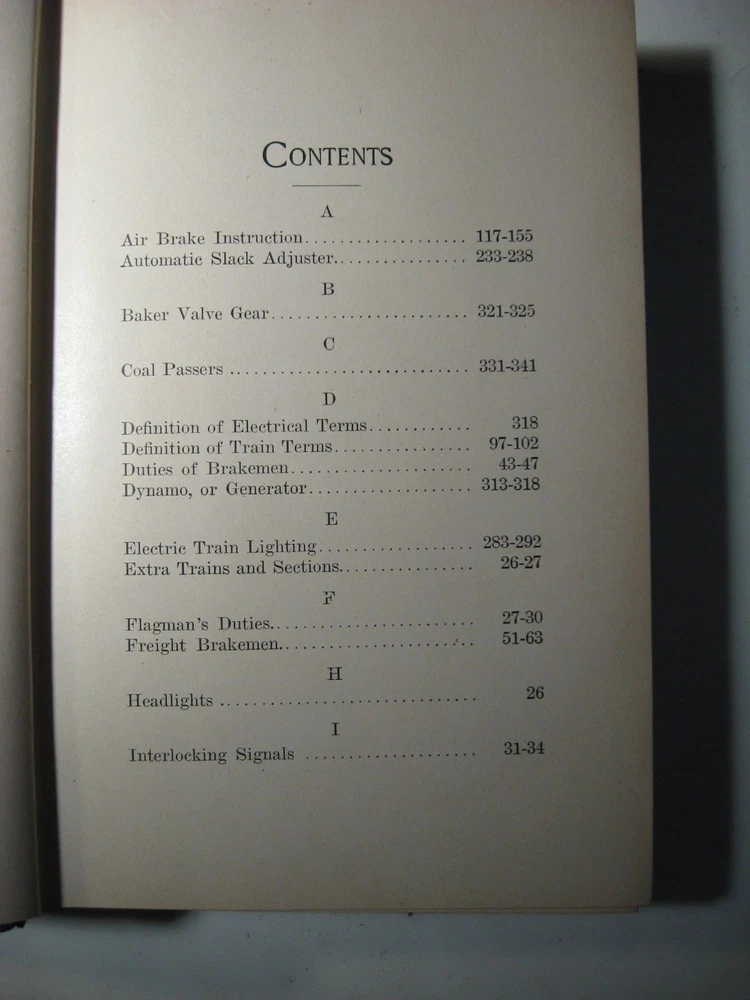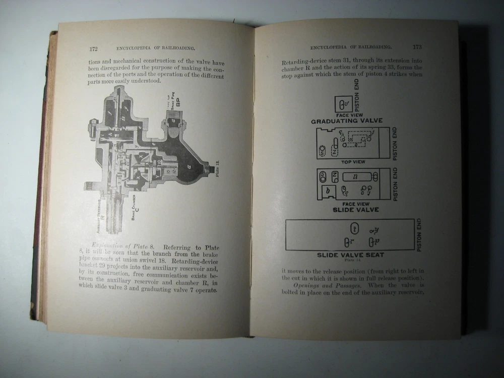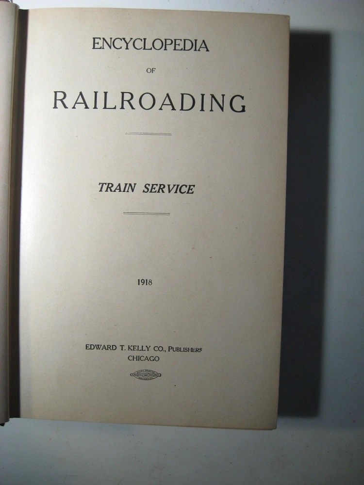 ***************************************************************************************************************************************** ENCYCLOPEDIA OF RAILROADING - TRAIN SERVICE, COURSE FOR BRAKEMEN AND BAGGAGEMEN Edward T. Kelly Co., Publishers, Chicago. 1918 date on title page. Copyright 1910 by National Text Book Company. Fair to Good Condition hardcover book. Exterior: Dark brown leather on spine and corners. Brown cloth on boards. Binding is generally clean, square and tight. Gilt lettering on spine. Panel edges are rubbed. Leather edges are heavily chipped. Spine ends are chipped away. Corners are worn through to boards. Spine leather is split halfway down from the top, along the front panel. Interior: Illustrated endpapers are clean. Pages are clean, smooth, glossy paper used. No owner names or handwriting in text. Extensively illustrated with detailed technical drawings, including excellent condition fold-out diagrams. 376 pages including index. Contents: Vintage technical reference for those interested in America's railroading heritage. NOTE: I only use photos of the actual item I'm selling (no stock photos). I combine shipping. Each additional book/CD/DVD set is $1.00 added to the media rate shipping cost of the heaviest book/CD/DVD set. This policy does not apply to sets of books. I will reduce the shipping cost as much as possible when you buy a set of books plus other book items. REFUND POLICY: A REFUND OF YOUR PURCHASE PRICE WILL BE GLADLY GIVEN FOR ANY ITEM WHEN RETURNED IN THE SAME CONDITION AS WHEN SENT.