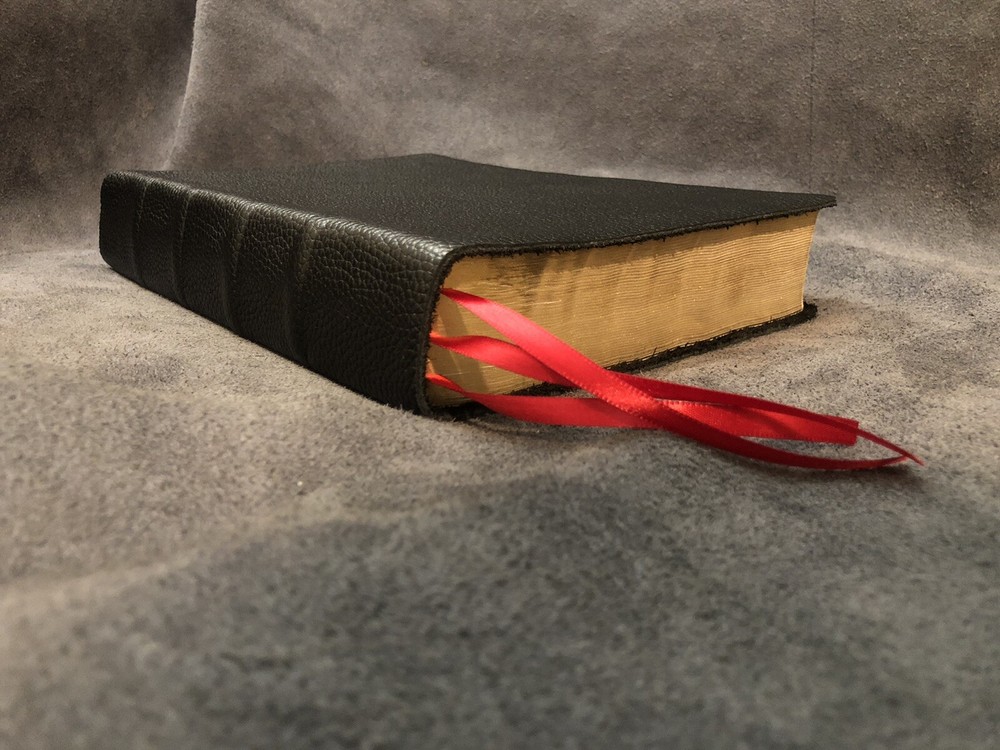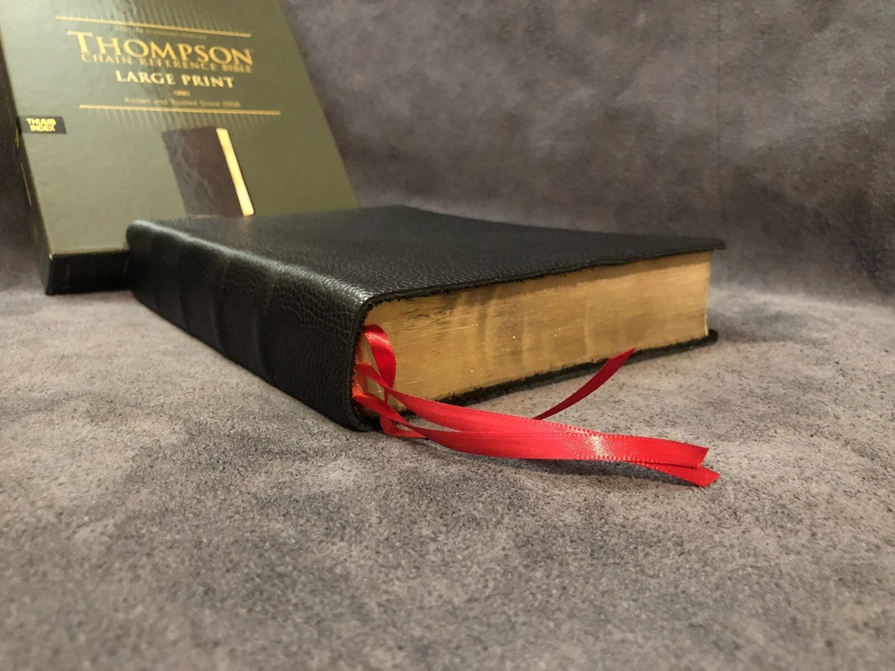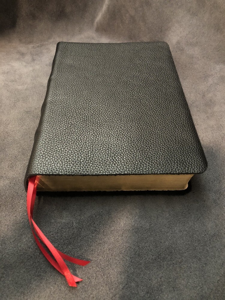 Shipped with USPS Media Mail. Comes with genuine cowhide leather, the thickness of leather is 4 oz. the leather is very durable, ribs on spine for elegant look, 3 ribbons, this Bible has no markings or highlights whatsoever it has never been used plz examine pics carefully before purchasing and feel free to ask any questions, I do my best to respond quickly and also be sure to check out the other bibles that I have for sale, and if you want a certain Bible rebound let me know I can do that too, God bless.