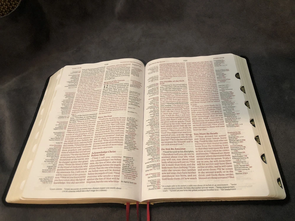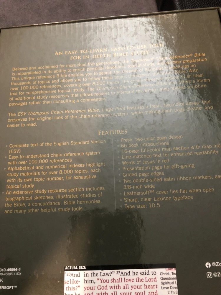 Just received this beautiful, buttery-soft leather bound Bible. Communication with Seller was great, as I had a request that the Seller fulfilled. Packaged nicely, so the Bible was not damaged. All buyers can confidently purchase with this Seller *****