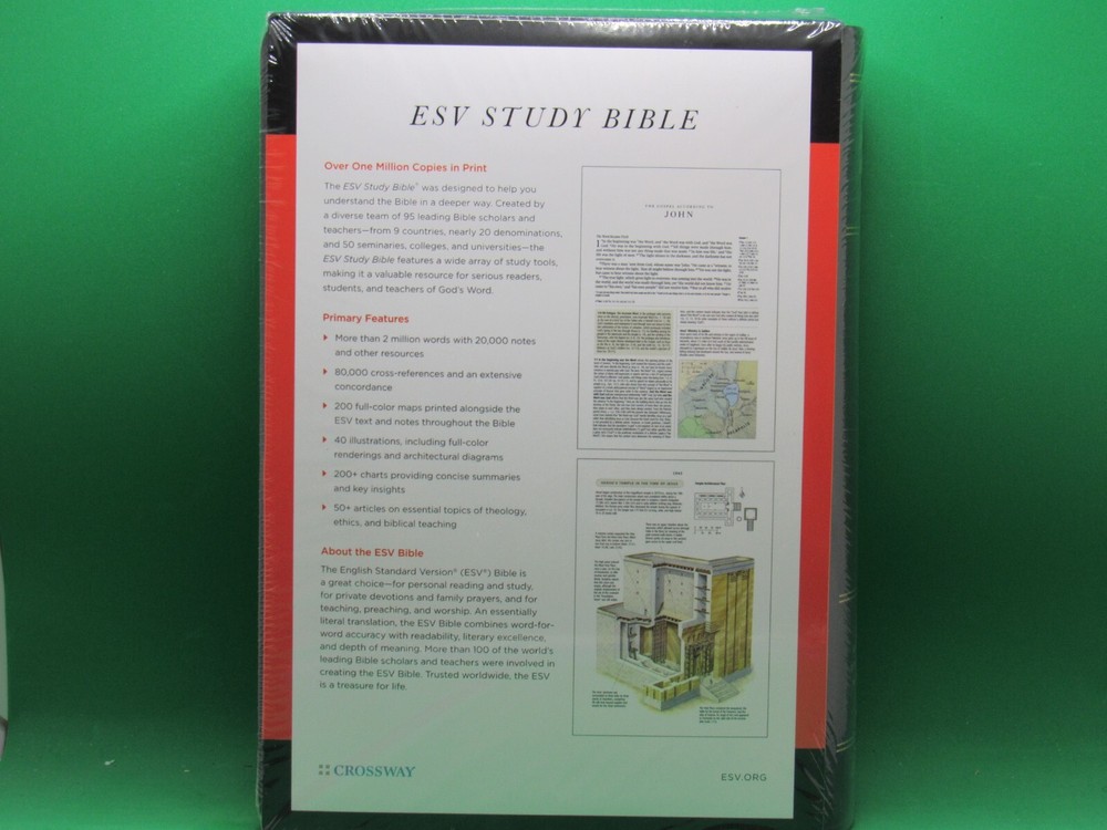 The ESV Study Bible in black genuine leather binding is an essential resource for any Bible student or reader. It features 80,000 cross-references, 20,000 study notes, 200+ charts, and a concordance, all designed to aid in a deeper understanding of the text. The 2016 ESV Text edition is presented in English and is intended for an audience that includes adults, ages 9-12, and young adults. This nonfiction Bible measures 9.75 inches in length, 6.75 inches in width, and has a height of 2.5 inches. It contains 2752 pages and is published by Crossway. The Smyth-sewn binding ensures durability and longevity. In addition, the Bible includes 240 full-color maps and illustrations, making it a comprehensive and valuable resource for anyone seeking to explore the Bible in depth. Brand New - We ship FREE to any address in the United States