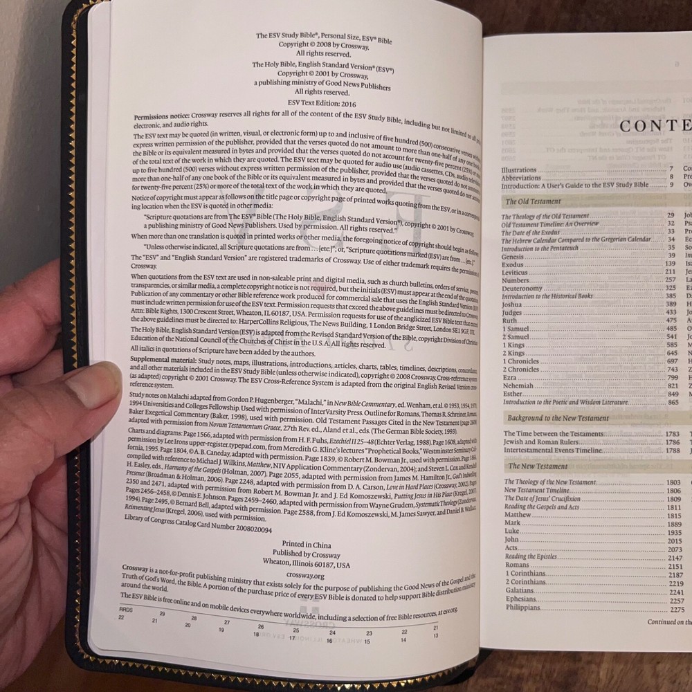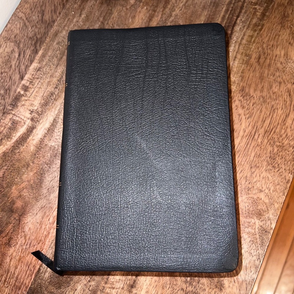 Dive deep into the Bible with the ESV Study Bible, encased in a sleek black genuine leather binding. This comprehensive resource, published by Crossway, boasts an impressive collection of features including 20,000 study notes, 80,000 cross-references, and 240 full-color maps and illustrations that bring biblical stories to life. The Smyth-sewn binding ensures durability and longevity, making it a reliable companion for both study and devotion. Though there's minor wear on the outer cover and a flaw on the first inside page, the wealth of content and sturdy craftsmanship more than make up for it. Perfect for anyone seeking a deeper understanding of Scripture.