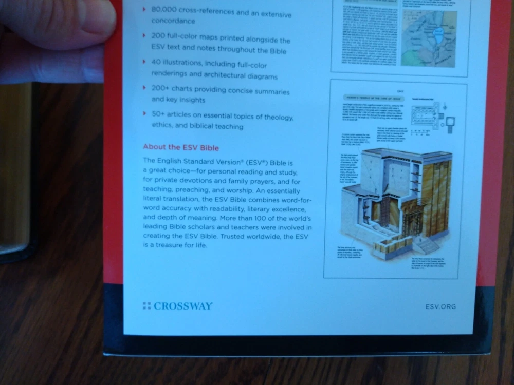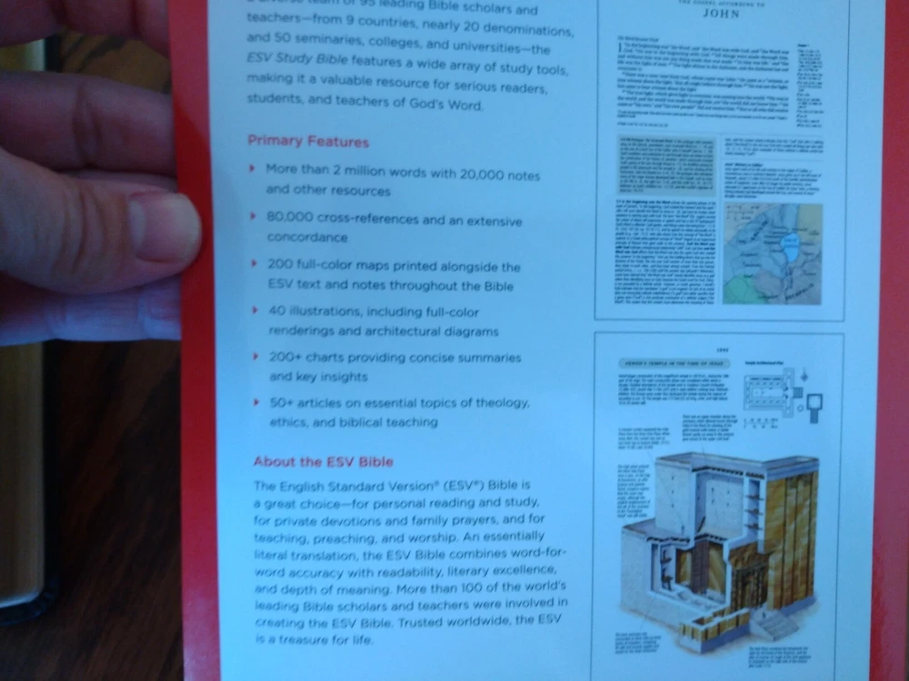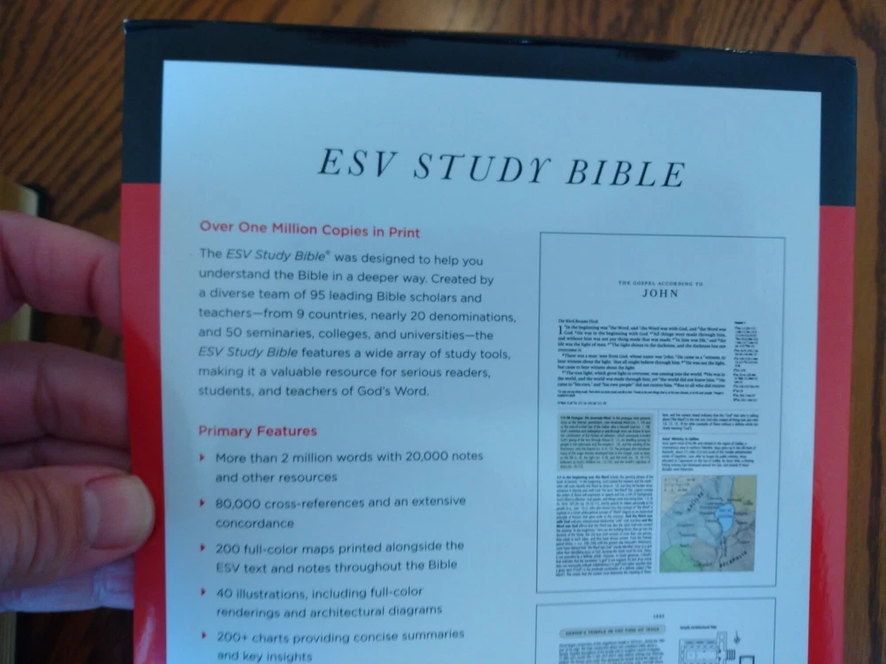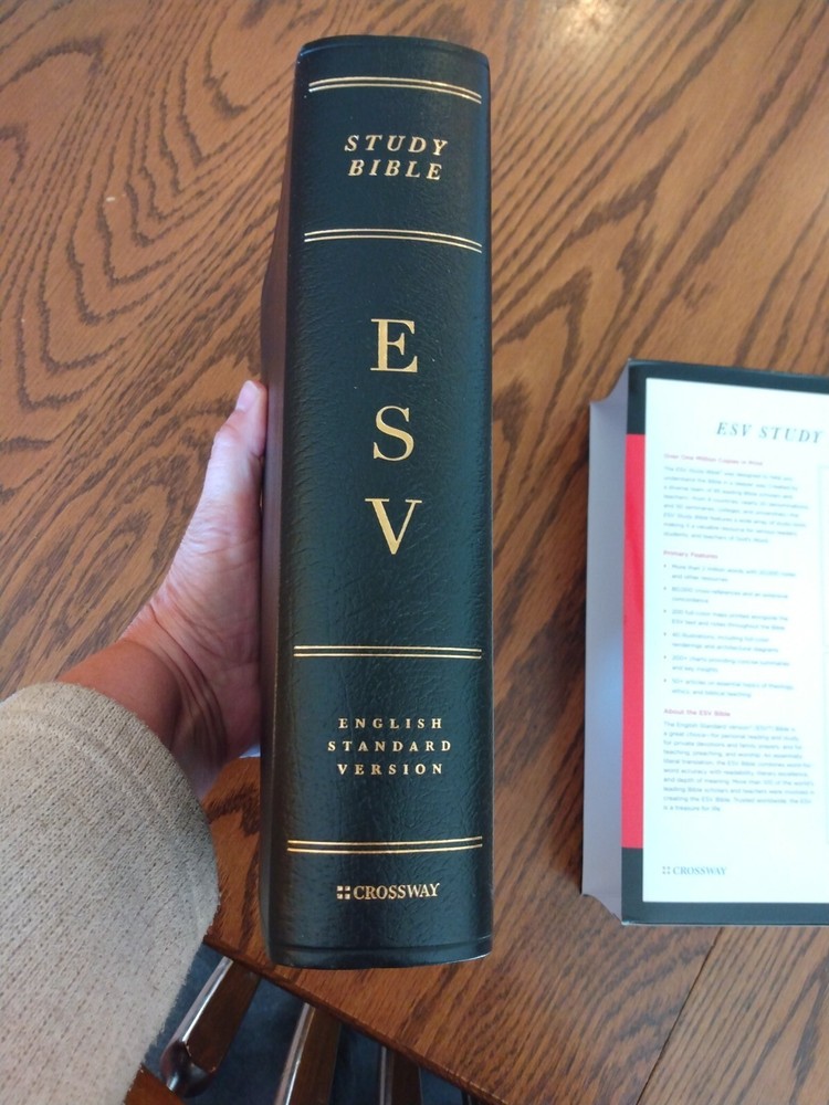 Feel free to ask questions. I try to return and answer your questions in a timely manner and as soon as I am able. NO RETURNS. Please buy responsibly. Visit my eBay store at aboundingjoy66 ESV Study Bible, Burgundy Genuine Leather Binding - English Standard Version Dimensions 9.50 X 6.75 X 2.25 (inches) Text size font is 9 point; note size is 7 point Smyth-sewn binding (will last a long time) Words of Christ in black