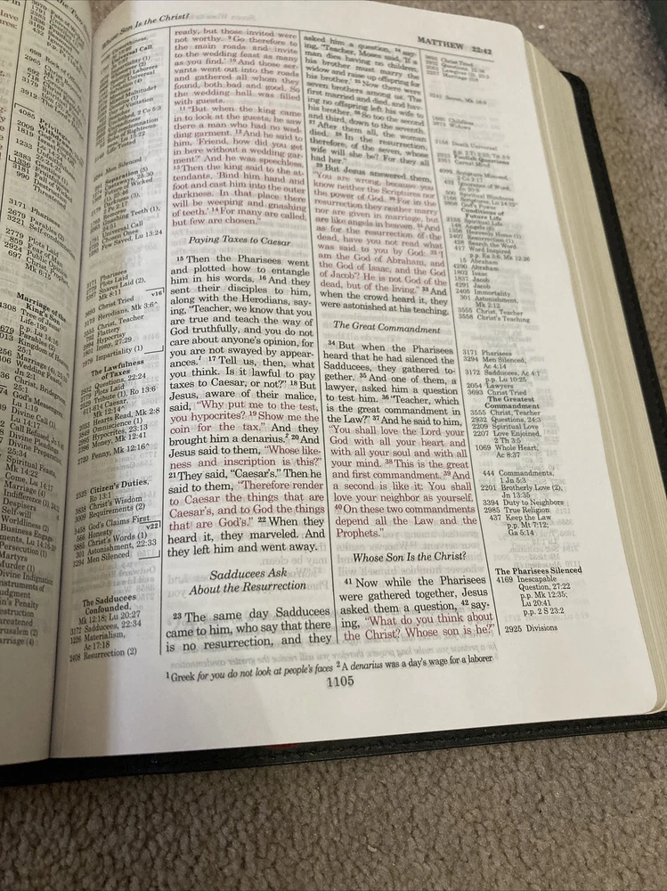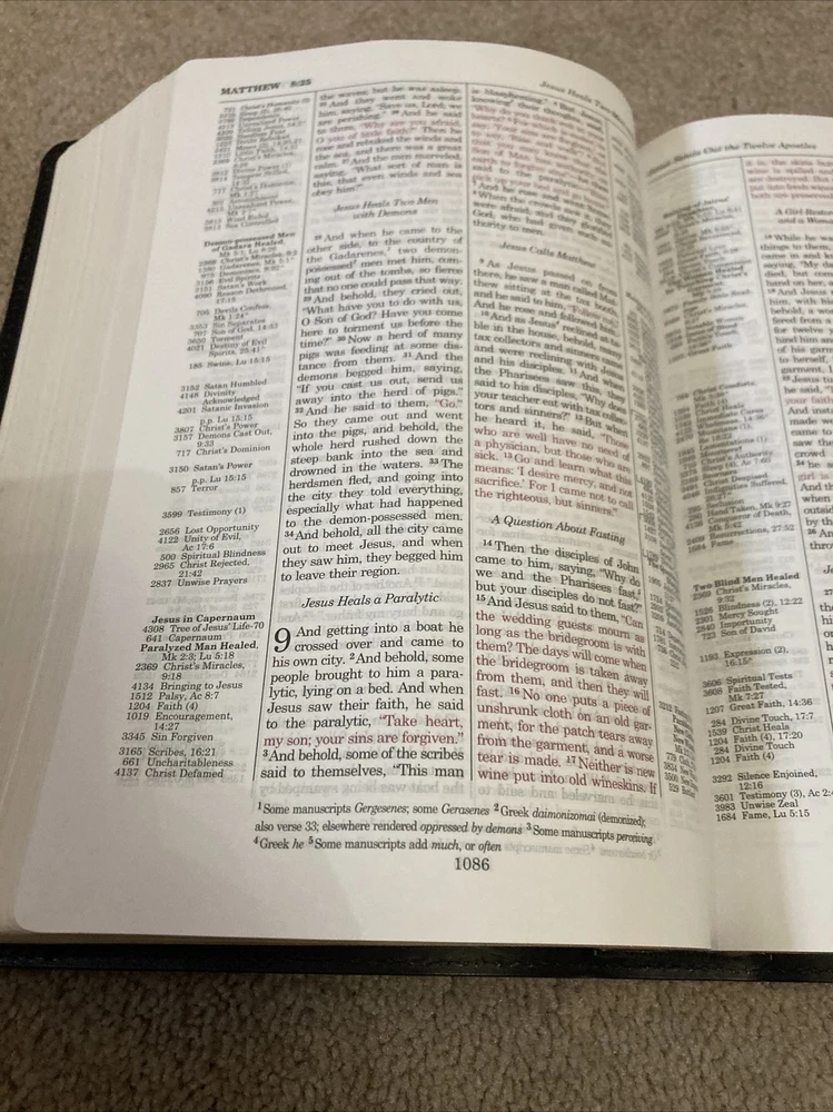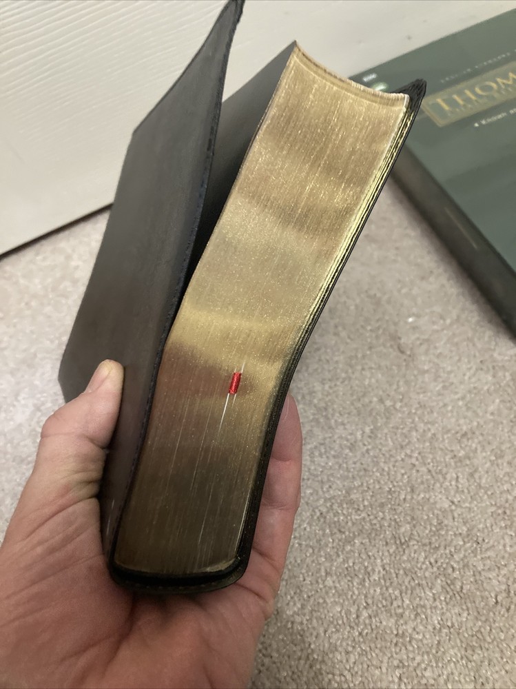 Feel Free to Ask Questions. Please! No Sunday Sales. CHECK OUT MY OTHER ITEMS FOR SALE. YOU MAY FIND SOMETHING ELSE YOU NEED. RED LETTER, BLACK BONDED LEATHER. 8.3 ON THE FONT SIZE. THIS IS A LITTLE SMALL FOR SOME. SATIN RIBBON MARKER.