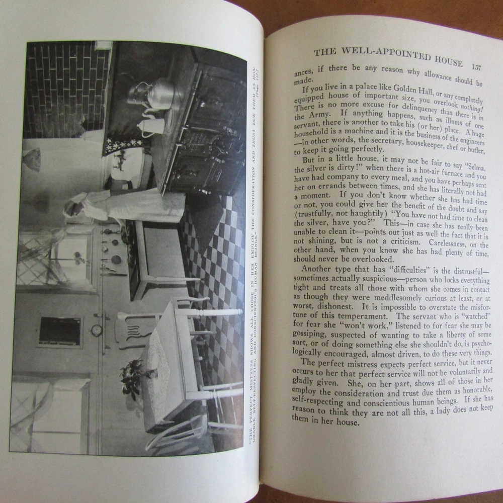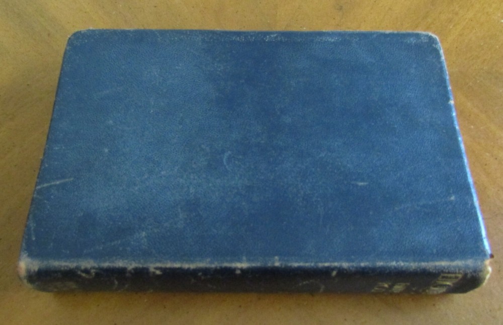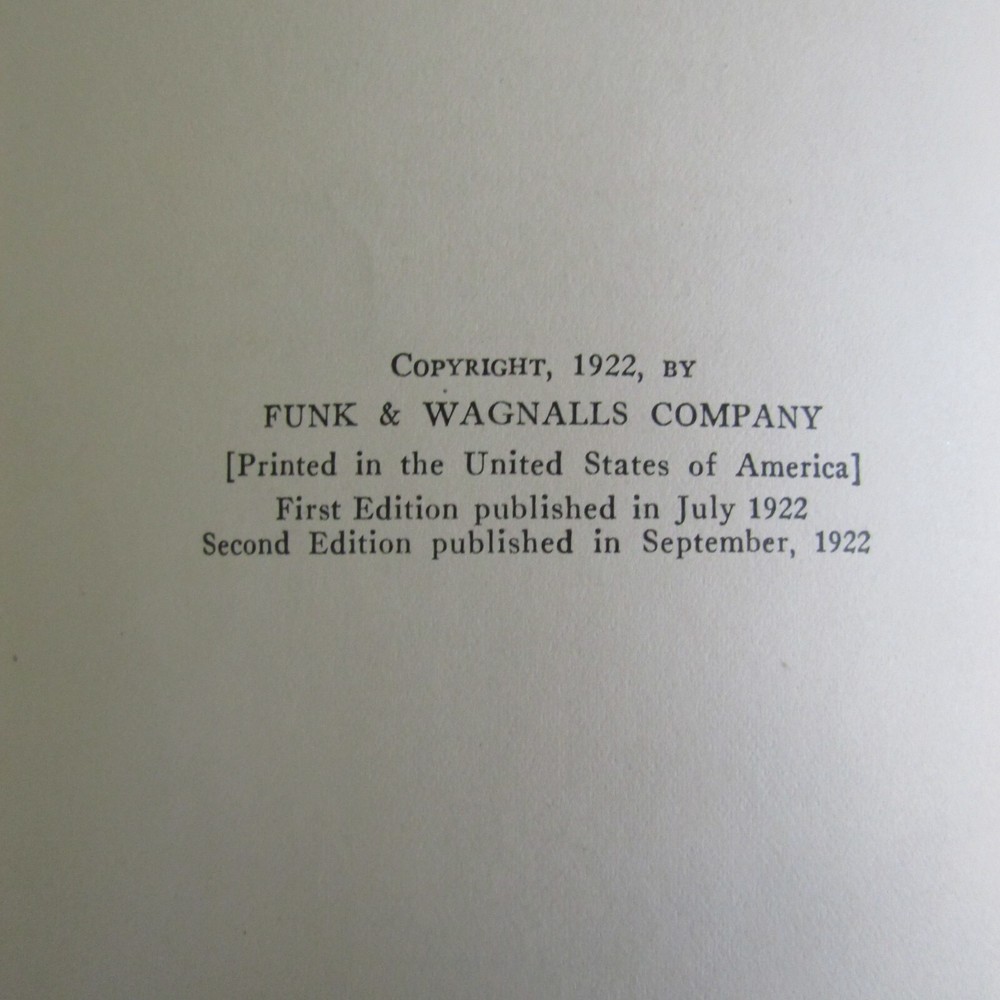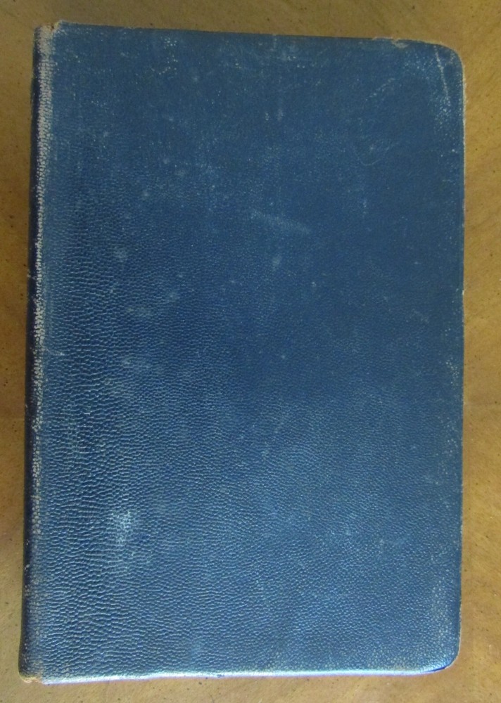 ETIQUETTE In society, in business, in politics, and at home by Emily Post was published by Funk & Wagnalls in 1922. The definitive text on manners and correct presentations in social affairs, covering a wide variety of gatherings, 627 pages with index. Fifteen b/w plate photographs scattered. "Second Edition published September 1922" on the copyright page. Gilt page edges. Binding is dark blue leather with gilt lettering at the spine. 6" x 9." Good condition. Plate photograph opposite p. 132 has a 4" horizontal tear at the upper section. A few pages have darkened imprint from dried leaves or flowers put in pages. Front binding corners, the leather separates from the paper underneath. Light foxing to binding. Wear at extremities and spine edges. Thanks for looking!