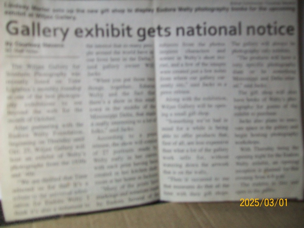 EUDORA WELTY (1909-2001) Pulitzer Prize author- Short story novelist writer and photographer. For sale is this 1977 Welty Souvenir Exhibit Catalog f rom exhibition at the Jackson State Historical Museum in Jackson, MS in October 1977. Photographs and text were by Welty- 12 page catalog and catalog remains in excellent condition. A fine rare gift for the Eudora Welty collector. Estate Sale . Thank you for looking. Media Ship.