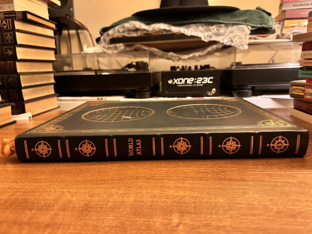 This stunning leather-bound Easton Press World Atlas is a treasure! The gilded edges and premium craftsmanship make it feel luxurious, while the detailed maps and pristine condition make it perfect for collectors or geography lovers. A timeless piece that looks amazing on any shelf—highly recommended for those who appreciate fine books!