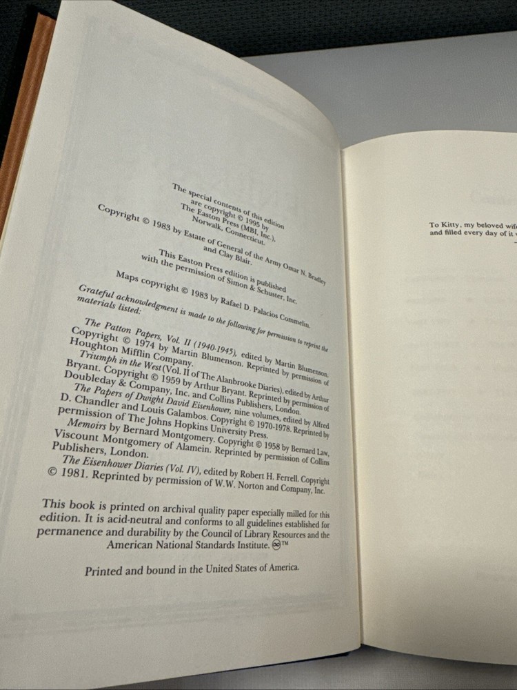 Easton Press Collector's Edition A General's Life: An Autobiography by General of the Army Omar N. Bradley and Clay Blair. Item in like new condition. Hardcover, leather bound. All edges gilt. Satin bookmark intact and appears unused.