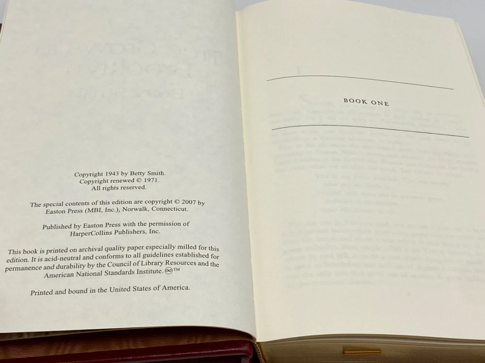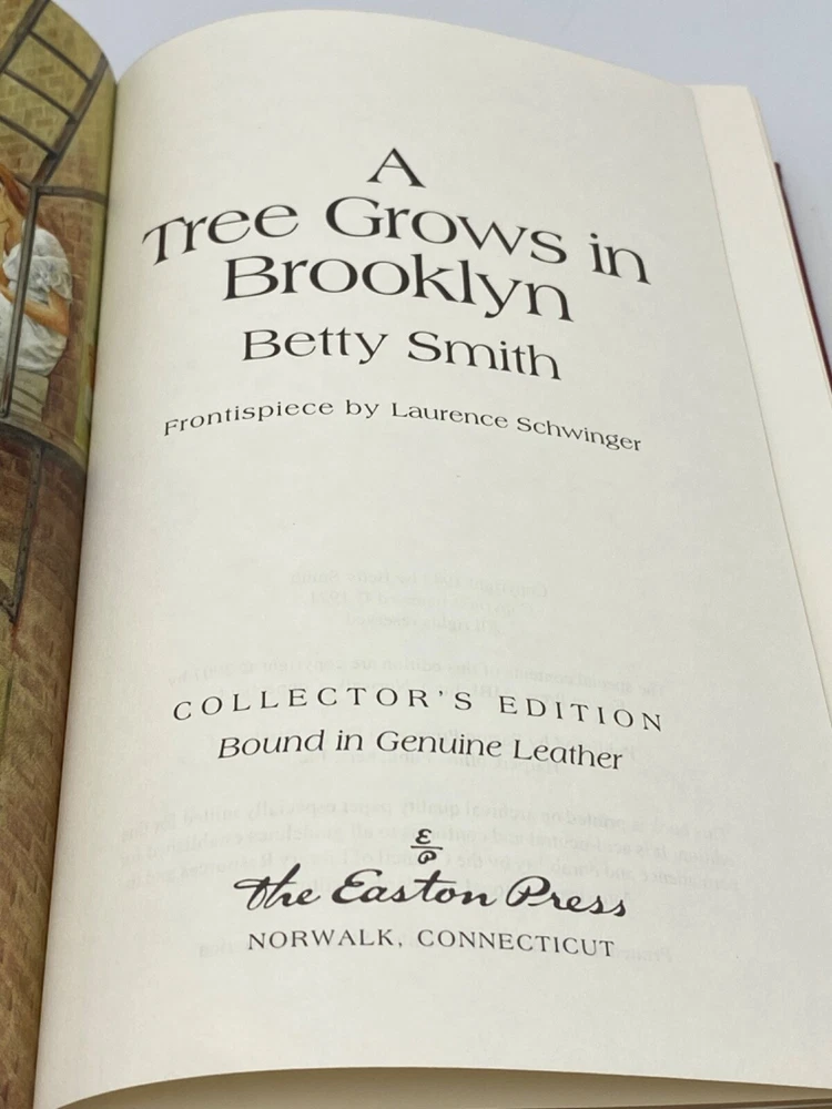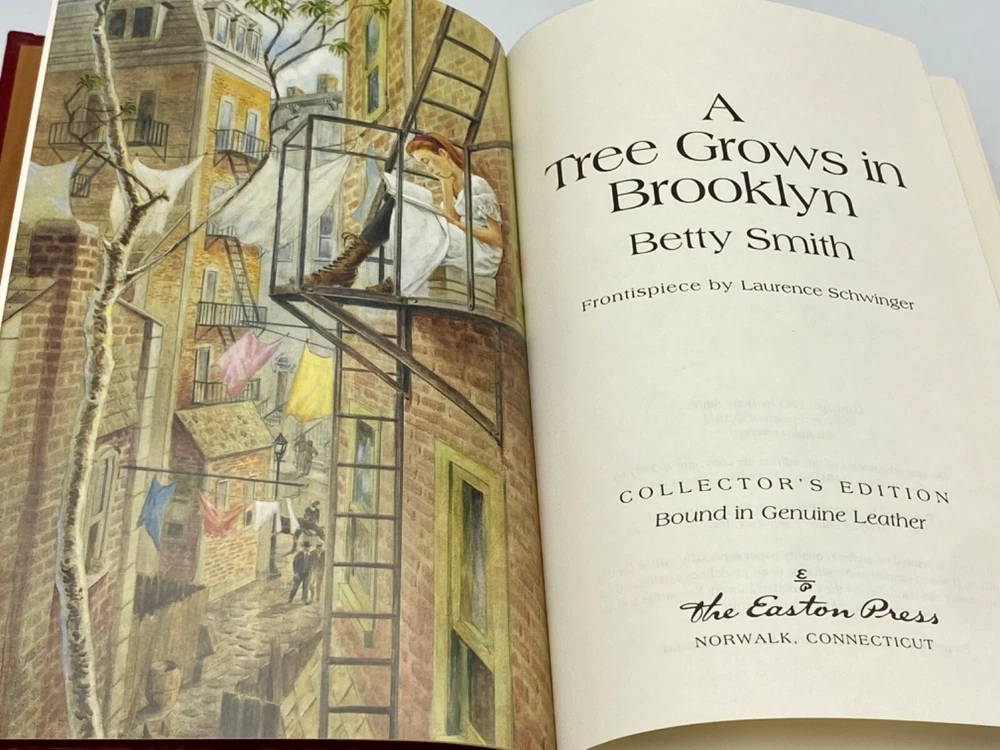 MAKES THE PERFECT GIFT FOR ANY FAN OF BROOKLYN NEW YORK / THE CLASSICS / AUTHOR BETTY SMITH / NEW YORKER ** PLEASE READ : Mahalo for taking the time to look at our listing. We truly appreciate it. We always do our BEST to give you the most accurate description of these beautiful books. If, however, you have any SPECIFIC questions about the SIZE of the book, NUMBER of pages, TYPE of leather, SMELL or FEEL of the book, PLEASE email us through EBay’s mail system BEFORE you bid, and we will be HAPPY to give you more information. We want you to be completely happy with your purchase and keep you as our customers for years to come.** DESCRIPTION: Easton Press’s LONG OUT OF PRINT full-leather binding of A TREE GROWS IN BROOKLYN by BETTY SMITH. THIS IS A SCARCE, ONE OF THE MOST DIFFICULT TO FIND VINTAGE HEIRLOOM EASTON WITH LAVISH GILT IMPRESSIONS TO THE BOARDS AND SPINE with A GORGEOUS FULL-COLOR FRONTISPIECE. IT IS ONE OF THE MOST HIGHLY-PRIZED & MOST BEAUTIFUL EDITIONS OF THIS CLASSIC YOU CAN FIND. 🍍 NOT INCLUDED… 😃 ABOUT THE BOOK: The beloved American classic about a young girl's coming-of-age at the turn of the century, Betty Smith's A Tree Grows in Brooklyn is a poignant and moving tale filled with compassion and cruelty, laughter and heartache, crowded with life and people and incident. The story of young, sensitive, and idealistic Francie Nolan and her bittersweet formative years in the slums of Williamsburg has enchanted and inspired millions of readers for more than sixty years. By turns overwhelming, sublime, heartbreaking, and uplifting, the daily experiences of the unforgettable Nolans are raw with honesty and tenderly threaded with family connectedness -- in a work of literary art that brilliantly captures a unique time and place as well as incredibly rich moments of universal experience. CONDITION: Book is in LIKE NEW condition for its age with only a couple of faint, negligible rubs to the gilt page ends, barely worth noting, and the original attached blank bookplate, ready for your personalization (SEE PICS FOR BETTER DETAILS). NO WRITING FROM PREVIOUS OWNER, ETC. It is a SPECTACULAR edition! SHIPPING: FREE TO US ADDRESSES ONLY. INTERNATIONAL $ based on location. WE SHIP PRIORITY MAIL & PACK VERY WELL. Please check out our other listings of Easton Press, Franklin Library, Limited Editions Club, First Edition Library, Heritage Press, International Collectors Library and Folio Society editions. WE DO COMBINE SHIPPING IF YOU PURCHASE MORE THAN ONE COPY. Mahalo for looking at our listings! By bidding/purchasing this item, you are helping a very grateful family who sends you our WARMEST ALOHA & MAHALO!