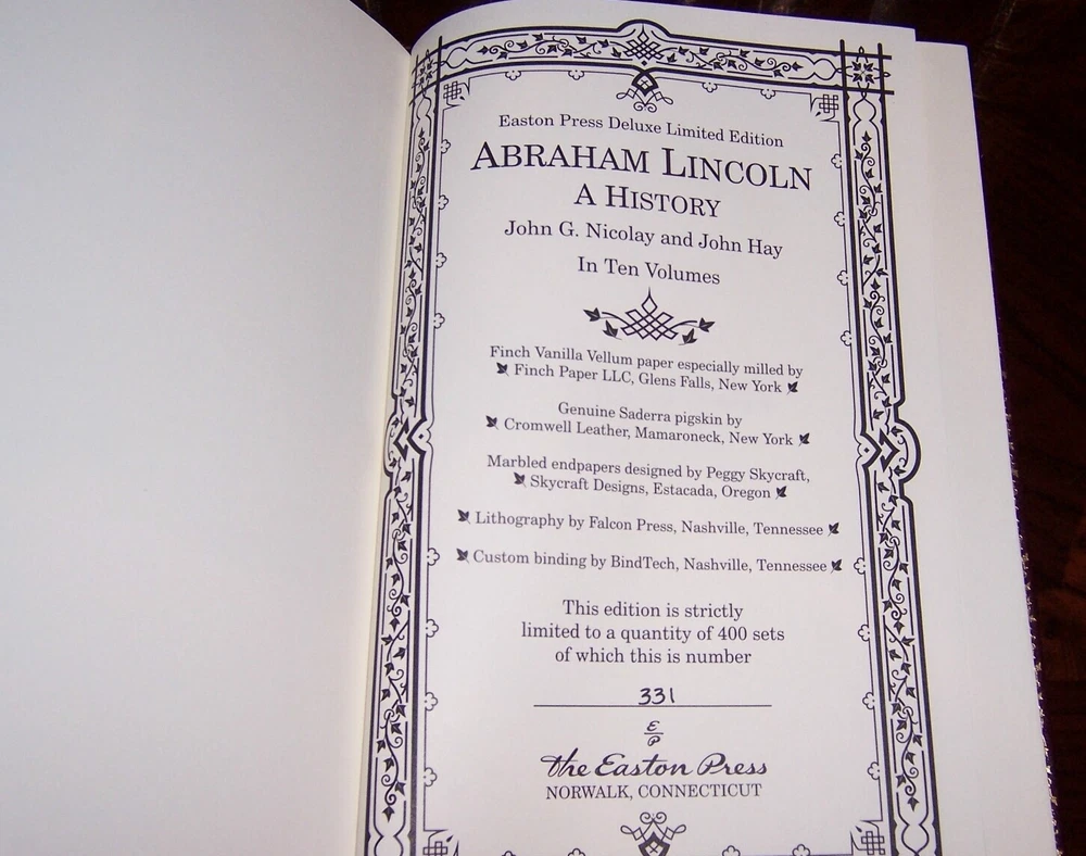 This stunning Easton Press edition of *Abraham Lincoln: A History* is a true collector's treasure. The leather-bound set, limited to just 400 copies, beautifully preserves the 1890 biography written by Lincoln's own secretaries. The craftsmanship is impeccable, with gilt-edged pages and a timeless design that honors the 16th president's legacy. A must-have for history enthusiasts and bibliophiles alike—this set is as much a work of art as it is a vital historical resource. Holding these volumes feels like owning a piece of history itself. Absolutely breathtaking!