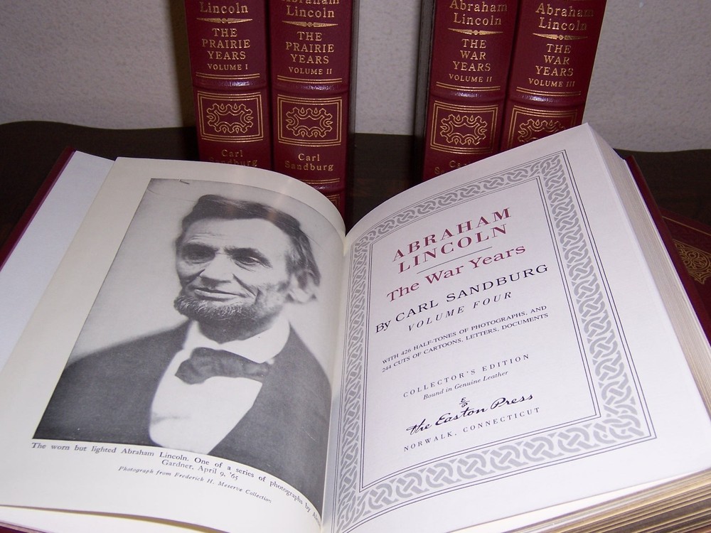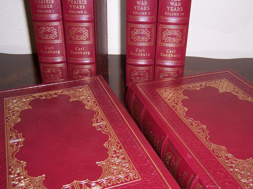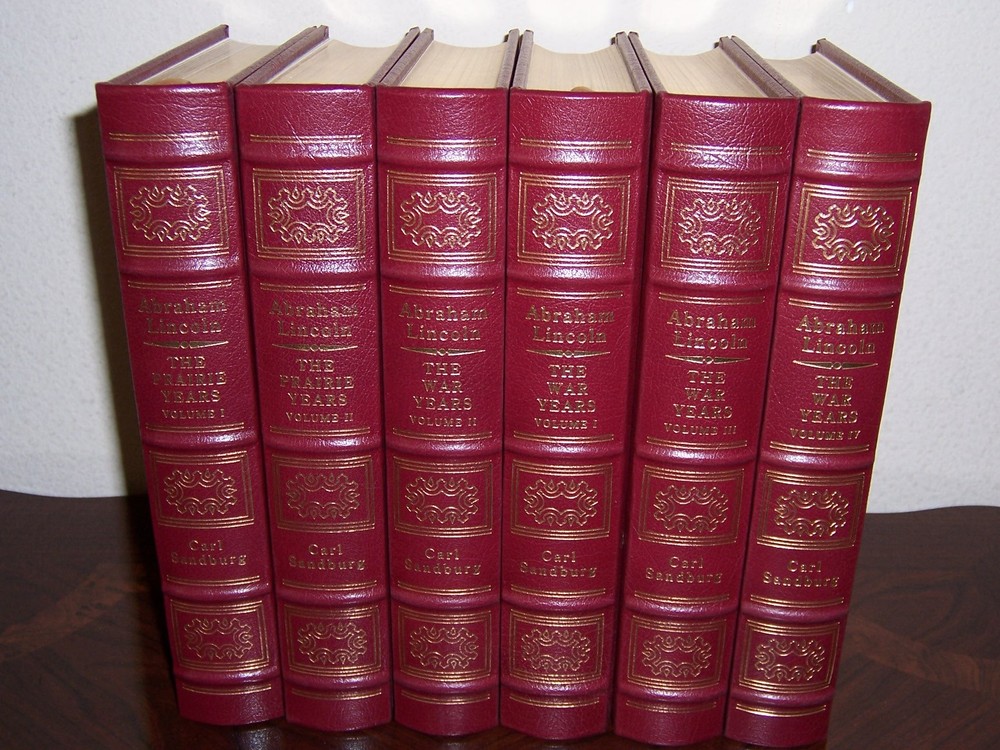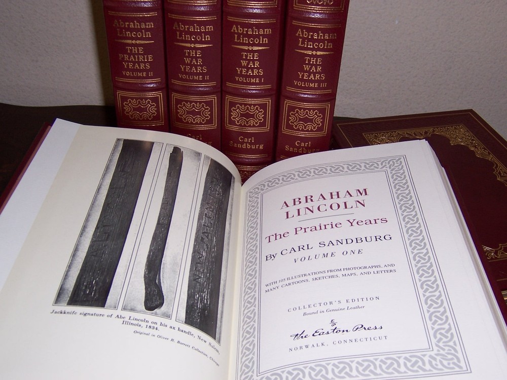 The most comprehensive Lincoln's works ever published Easton Press ABRAHAM LINCOLN in 6 vols by Carl Sandburg with frontispiece art works of Lincoln's portrait PrairieYears -with 105 illustrations from photographs, and many cartoons, sketches, maps, and letters War Years -with 425 half-tones of photographs, and 244 cuts of cartoons, letters, documents BOUND IN GENUINE LEATHER Copyright by Easton Press Hubbed Spine, Bound in Premium Full Leather Distinctive Cover Design, Profusely Illustrated Moire Endleaves, Satin Ribbon Page Marker Accented in Real 22KT Gold, Gilt Page Edges Smyth-sewn Pages for Strength and Durability Long-lasting, High Quality Acid-neutral Paper LIST OF TITLES: complete in 6 volumes: ABRAHAM LINCOLN: THE PRAIRIE YEARS, Vol. I ABRAHAM LINCOLN: THE PRAIRIE YEARS, Vol. II ABRAHAM LINCOLN: THE WAR YEARS, Vol. I . ABRAHAM LINCOLN: THE WAR YEARS, Vol. II. ABRAHAM LINCOLN: THE WAR YEARS, Vol. III. ABRAHAM LINCOLN: THE WAR YEARS, Vol. IV. CONDITION DESCRIPTION: this set is in mint and unread condition: factory sealed in shrinkwrap, clean inside page, and binding is tight, beautiful bright endpapers and satin ribbon page marker. SHIPPING / HANDLING: The book will be shipped via USPS media mail with delivery confirmation, special care will be taken during packing to ensure you receive the books as described.