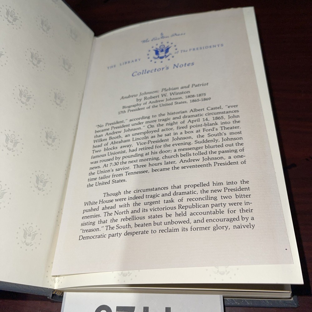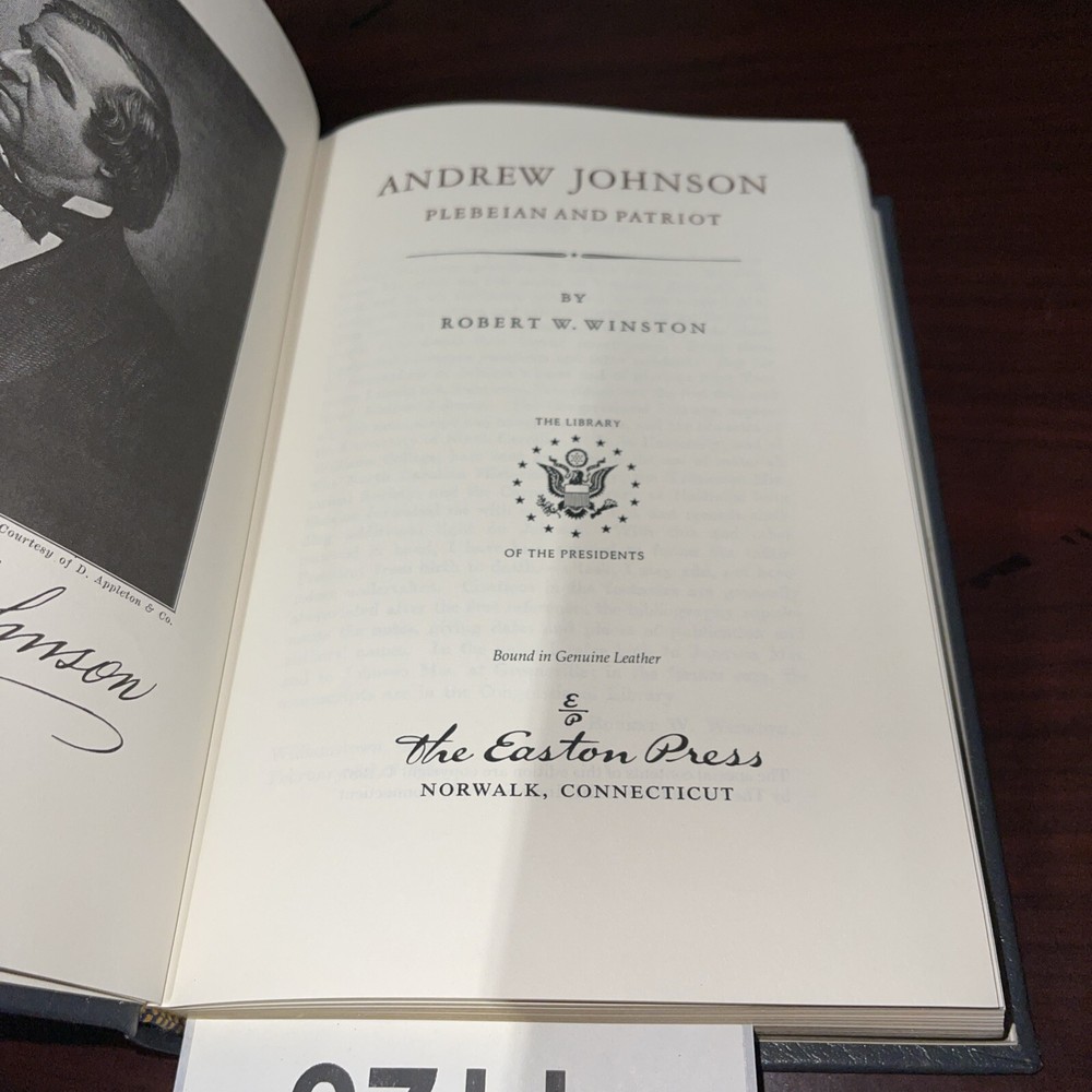 This rare and luxurious edition of "ANDREW JOHNSON PATRIOT" by Robert Winston is a must-have for any book collector or political enthusiast. The book, published by Easton Press in 1987, features a beautiful leather binding and is illustrated with first-edition pages. The book is written in English and covers the topic of political leadership, specifically the life of Andrew Johnson. It is a biography and autobiography that provides readers with a unique perspective on the subject. This original edition is a North American printing and was manufactured in the United States. It is a special attribute of this book that makes it a true gem for any bookshelf.