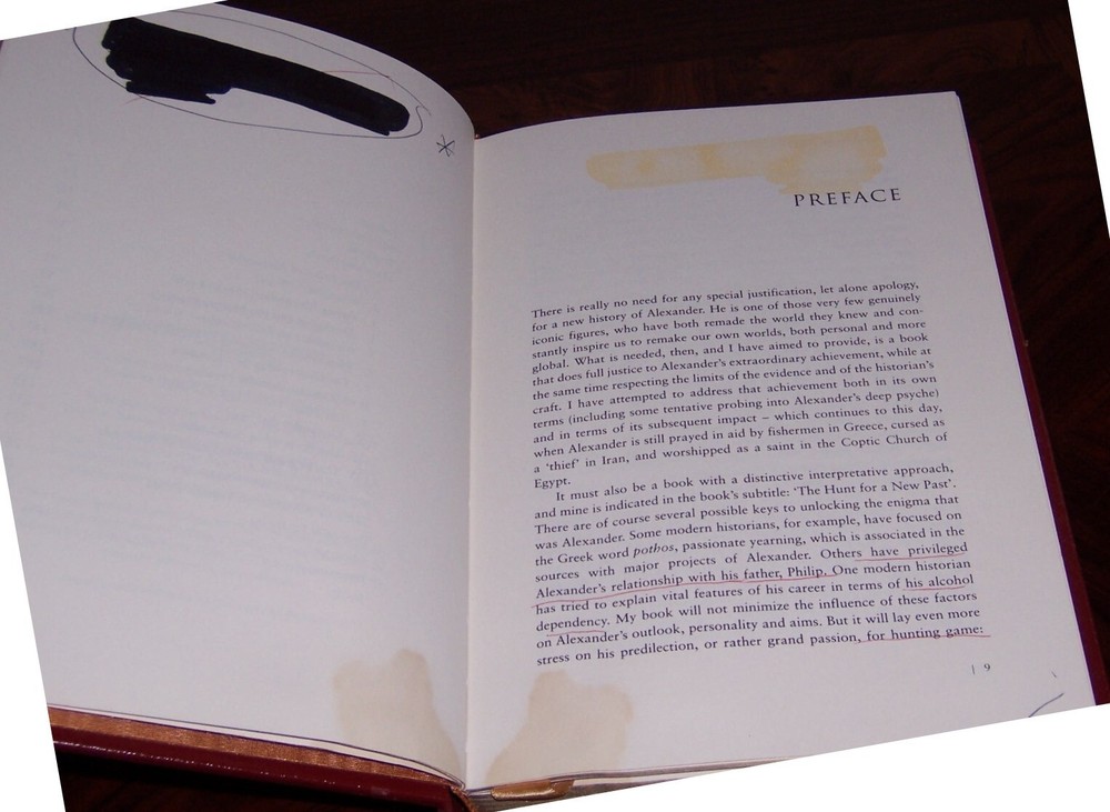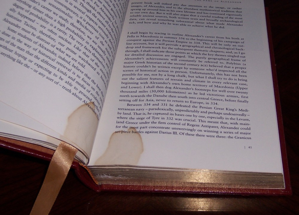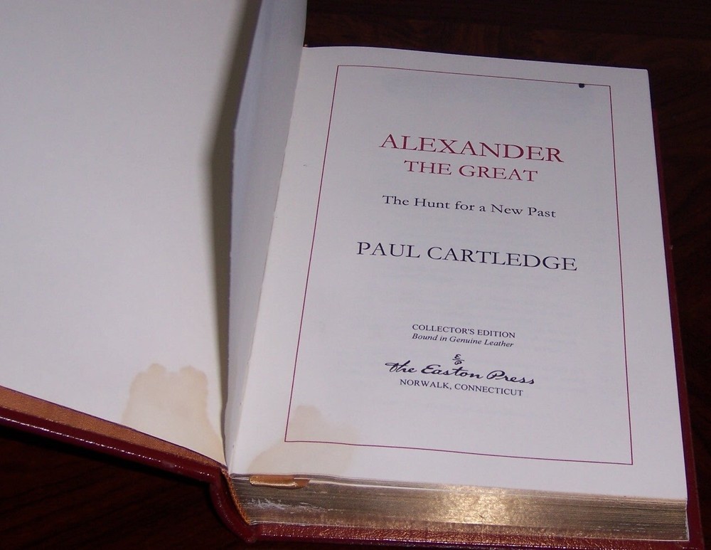 Ambition...determination...command...victory... Easton Press Alexander The Great: The Hunt for a Great Past by Paul Cartledge Wine red leather hardcover, uniform cover design Portrait stamped on the front cover measured by 6 1/2" x 9 1/2" do not miss out this good deal Copyright by The Easton Press hubbed spine, bound in premium full leathers distinctive cover design, beautiful illustrations handsome, readable typefaces, permanent satin ribbon page marker elegant gilded page edges, endsheets of rich moire fabric thread-sewn pages for durability and strength, long-lasting high quality, acid-neutral paper CONDITION DESCRIPTION: Acceptable and unread condition, WITH condition issues as photo-ed, binding is tight and gold page edging still shiny, beautiful bright endleaves and satin ribbon page marker. This set could be a precious addition to your family library. SHIPPING / HANDLING: Book(s) will be handled/packed very safely, and shipped via USPS media mail with delivery confirmation.