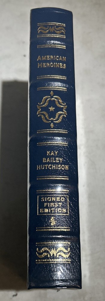 The product is the Easton Press American Heroines book by Kay Bailey Hutchinson, a limited edition collector's item. It is a signed first edition, still sealed and in new condition. The book is written in English and bound in leather with a focus on classic biographies and autobiographies of American women who are considered heroines. Published by Easton Press, this book is a valuable addition to any collector's library.